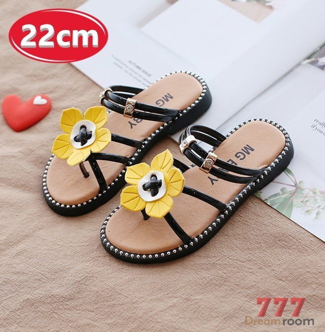 summer サンダル Flowerデザイン 【ブラック 22cm】 韓国子供服 キッズ ビーチサンダル フォーマル 女の子