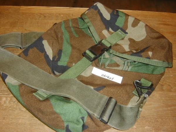 本来このバッグはパウチとして使用するためショルダーストラップは付きませんが、US放出品の軍用ショルダーを付けています。 3通りの使い方が出来ます。 1.ショルダーバッグとして使う 2.ベルトループに付けてパウチとして使う 3.ラックサックに付けてサイドバッグとして使う。 中は防水コーティングがされています。また口のドローストリングを絞れば中の物が出ない様になっています。 大きさは 横21cm×縦30cm×幅11cm程度。 沖縄離島を除く全国元払い500円でお送りいたします、落札価格にプラスでお願いいたします。