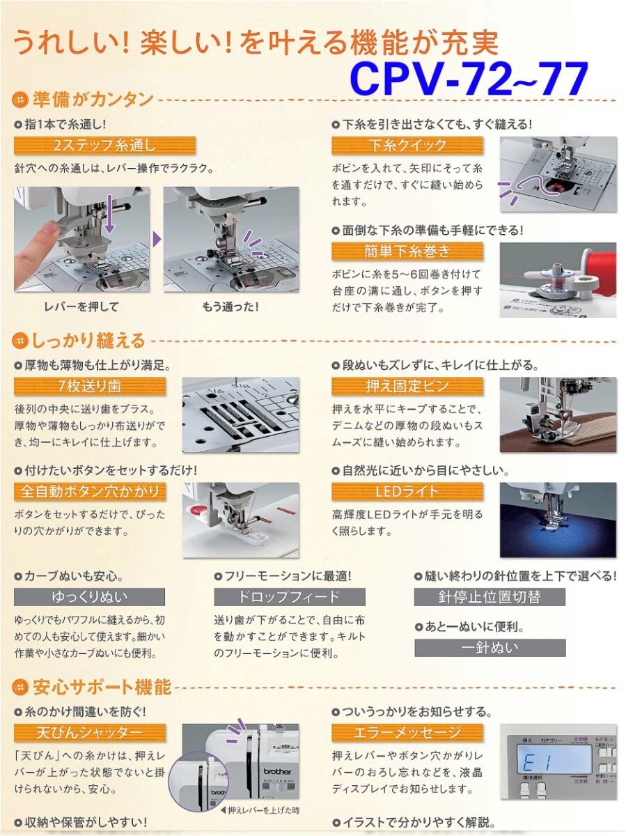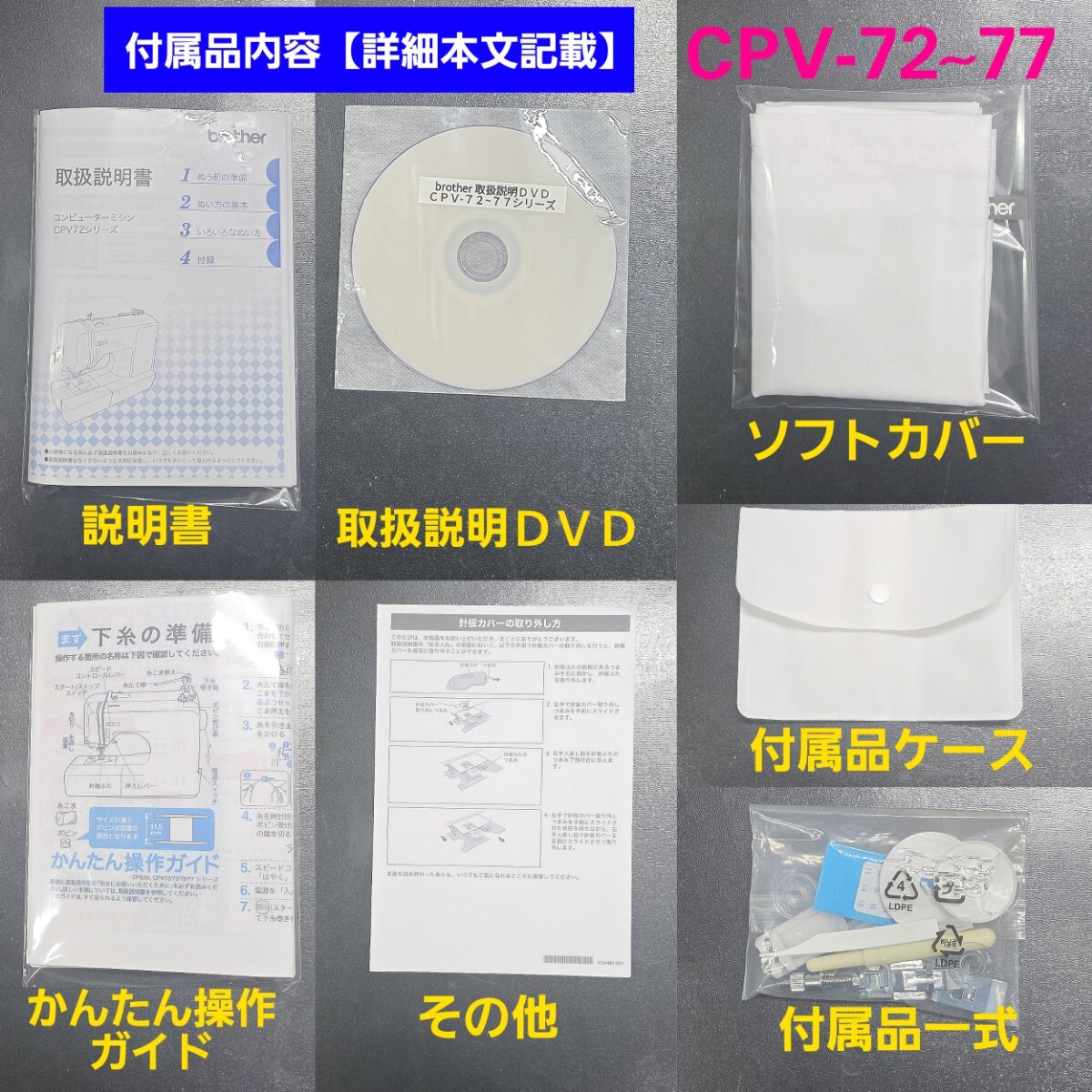 説明書、使い方DVD、簡単ガイド他/各コピー・針・ボビン・ブラシ・リッパー・糸押え・針板ドライバー・ソフトカバー・フット・大型ワイドテーブル