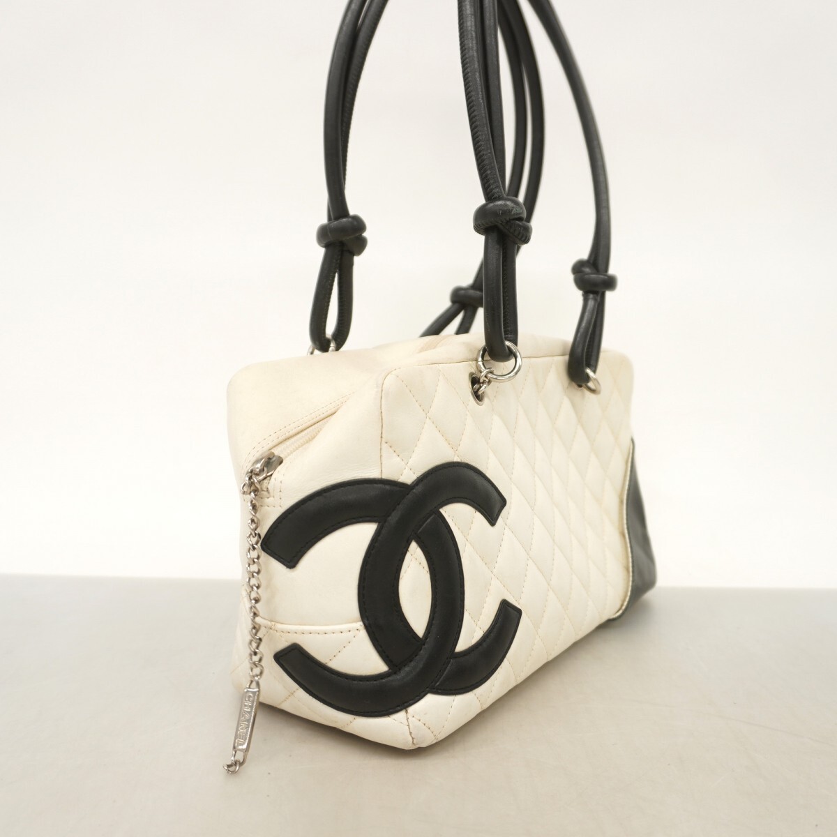 【5pa1000】シャネル ショルダーバッグ カンボン ラムスキン ホワイト シルバー金具【中古】レディース