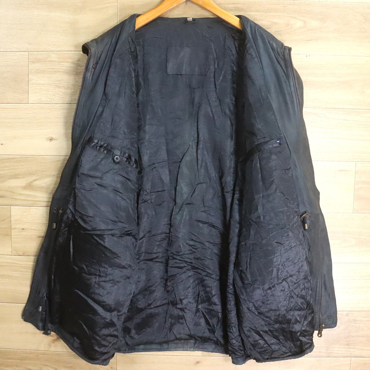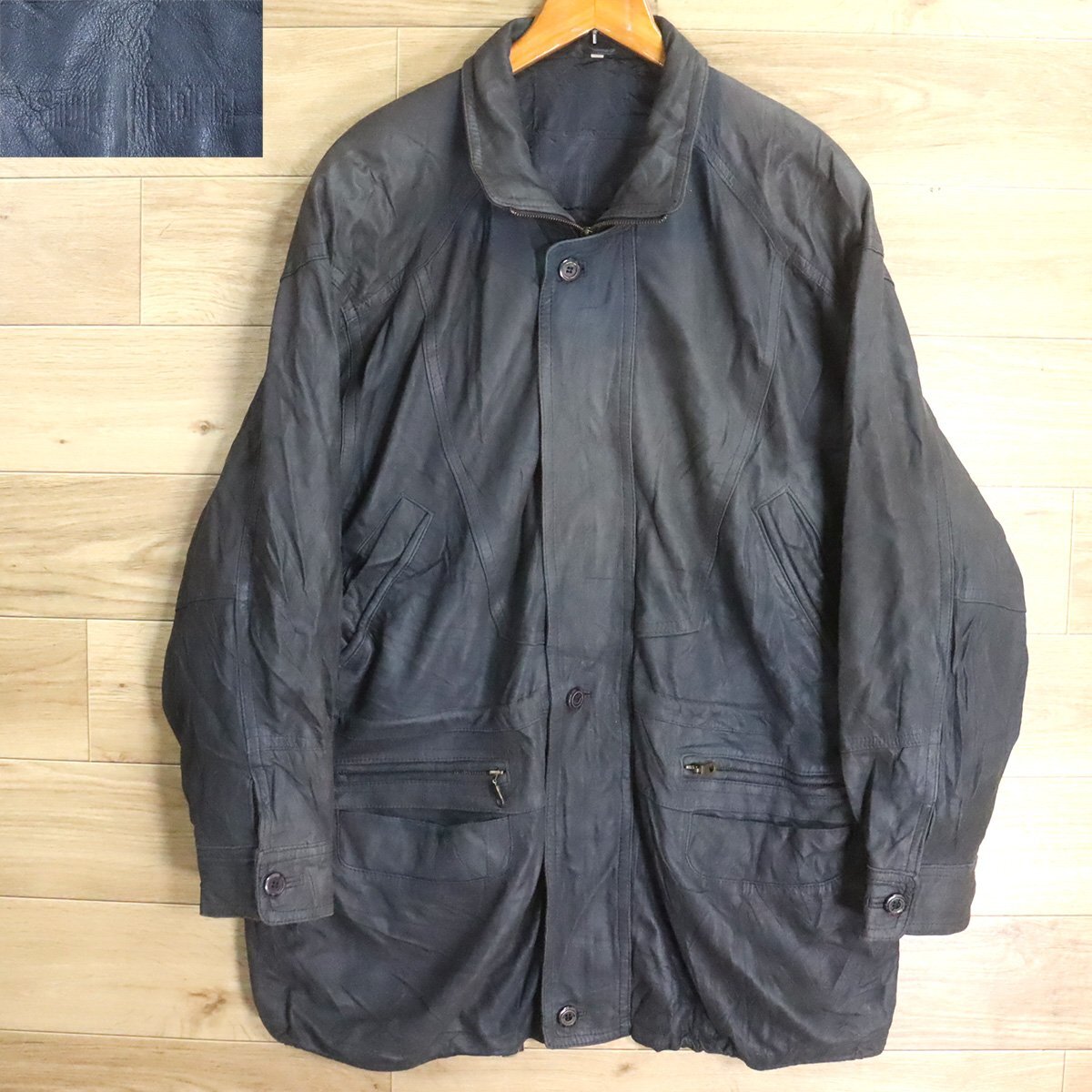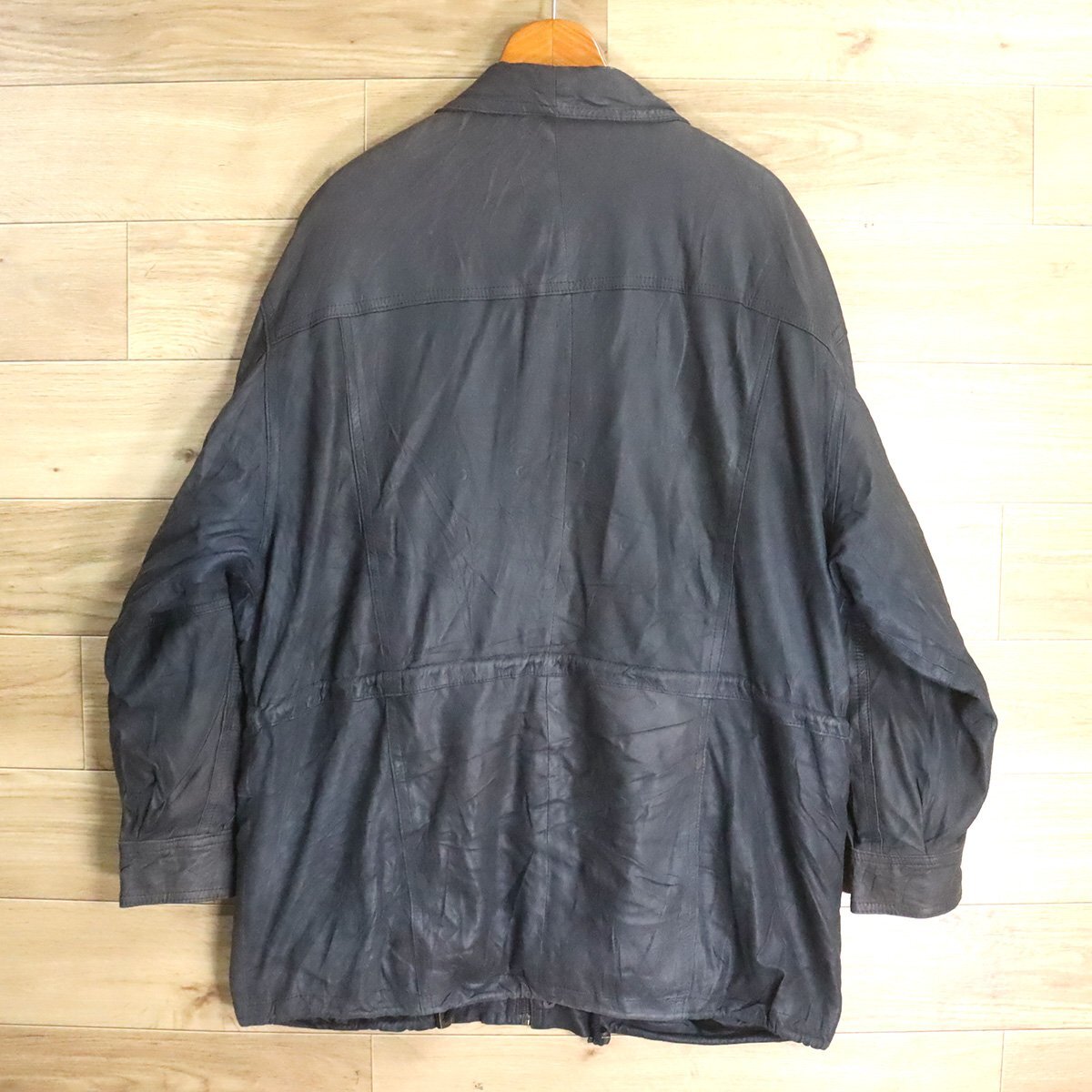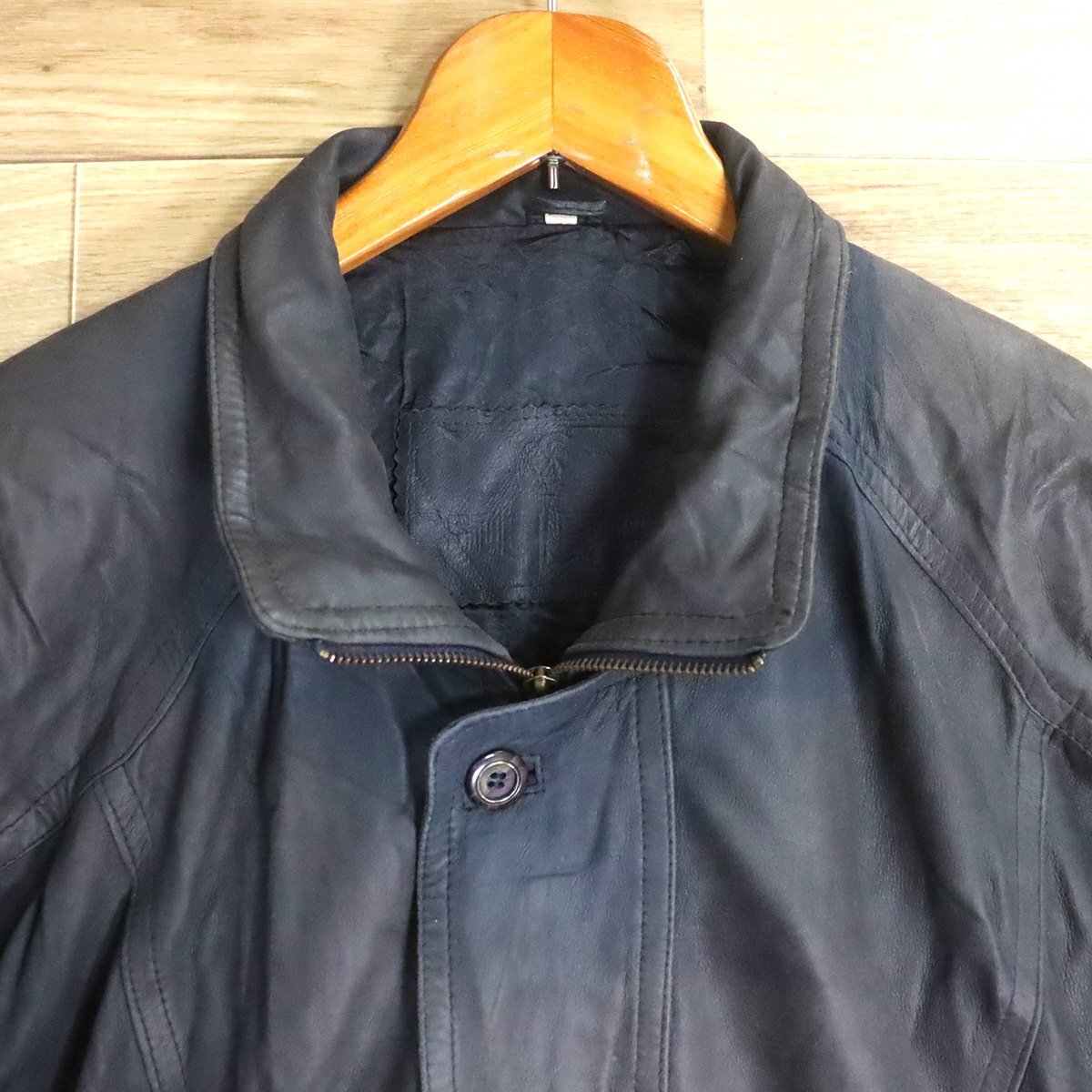 A1S/D11.28-4 ユーロ古着 レザーカーコート 本革 レザージャケット ハーフコート 革ジャン 皮ジャン L メンズ ヴィンテージ