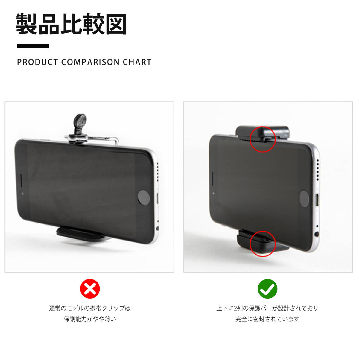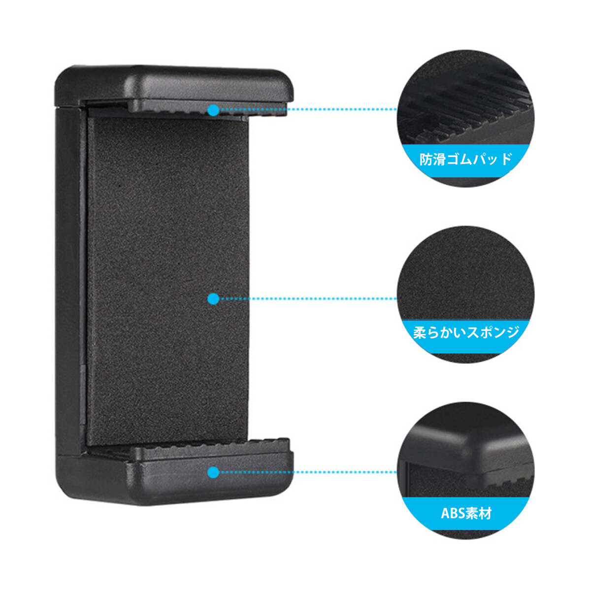| この製品について | 【滑り止め設計】内部に柔らかいスポンジクッションが内蔵されており、滑り止めで機器を傷つけません。 【高い互換性】1/4汎用インターフェースで、さまざまなアクセサリーと自由に組み合わせることができます。 【安定して伸縮可能】自在に伸縮し、クランプがしっかりしていて、落ちにくいです。 |
