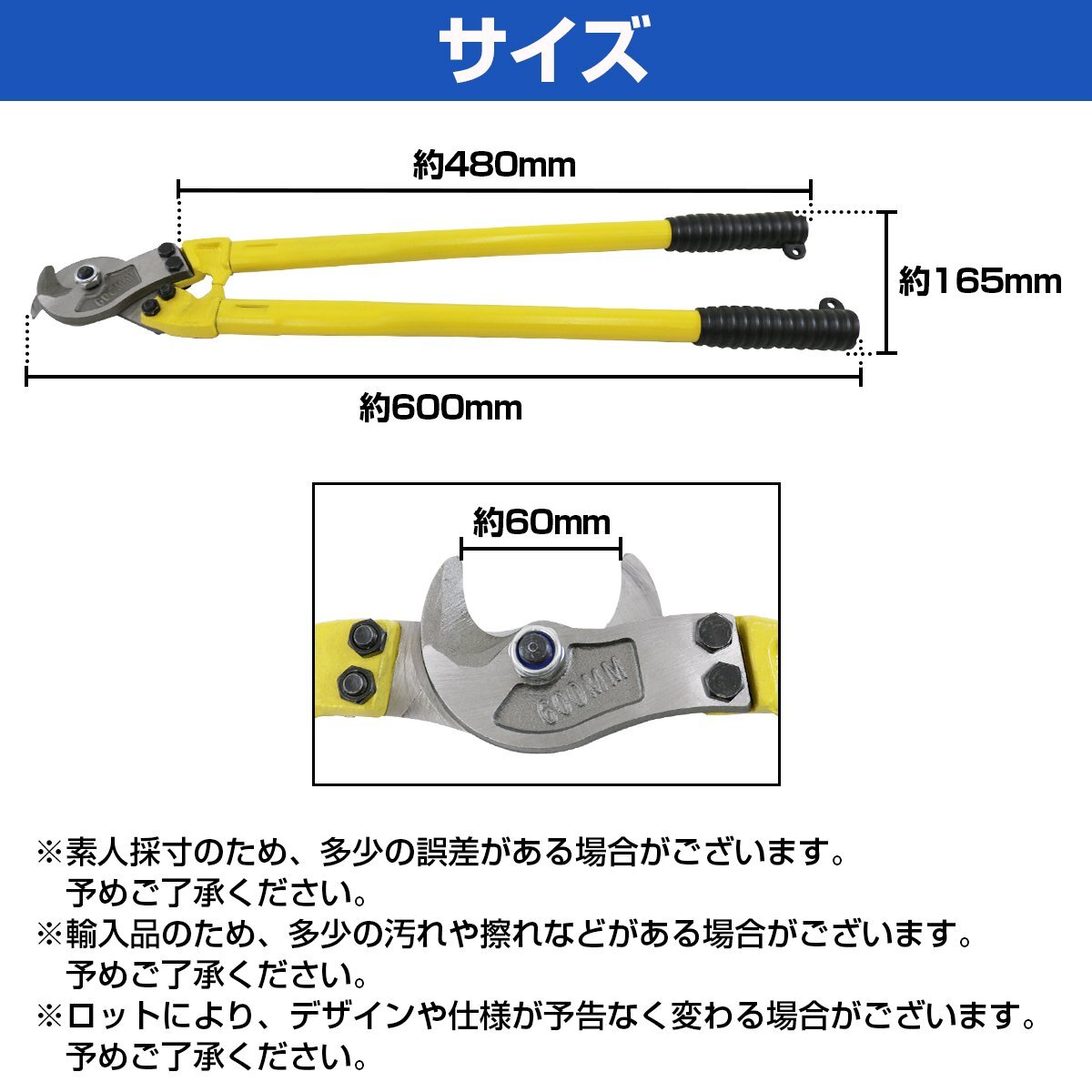 【送料無料】両刃式 ケーブルカッター 600mm/60cm ワイヤーカッター ロープ 番線カッター 切断50mm ケーブル 線 配線 電線 工事 整備