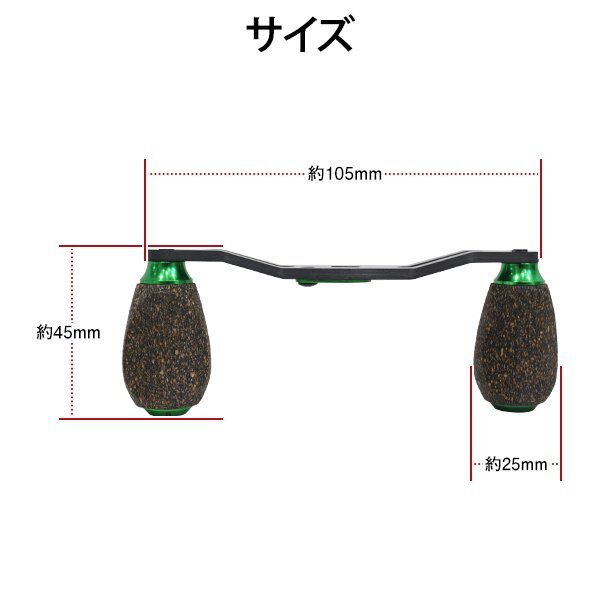 ダイワ アブ 用 リールパーツ ベイトリールハンドル 穴径8×5mm 右巻き 左巻き クランクハンドル カーボン コルクノブ グリーン 緑