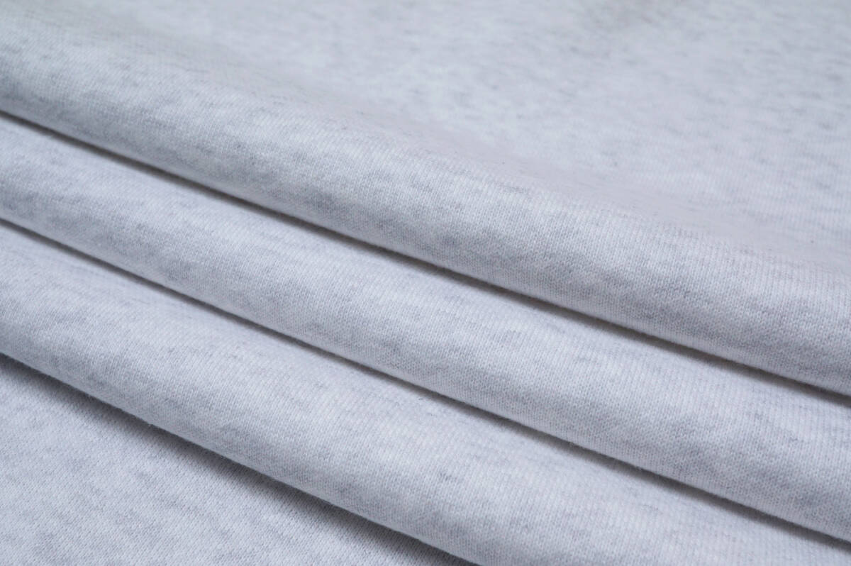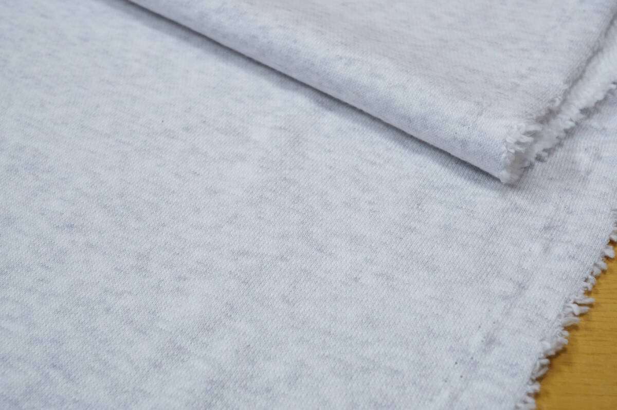 綿100%、中厚~やや厚地、1WAY伸縮、ややソフト系で、色調:杢ホワイトグレー、サイズは長2m・巾約180cm W巾でございます。