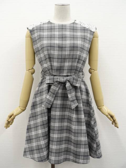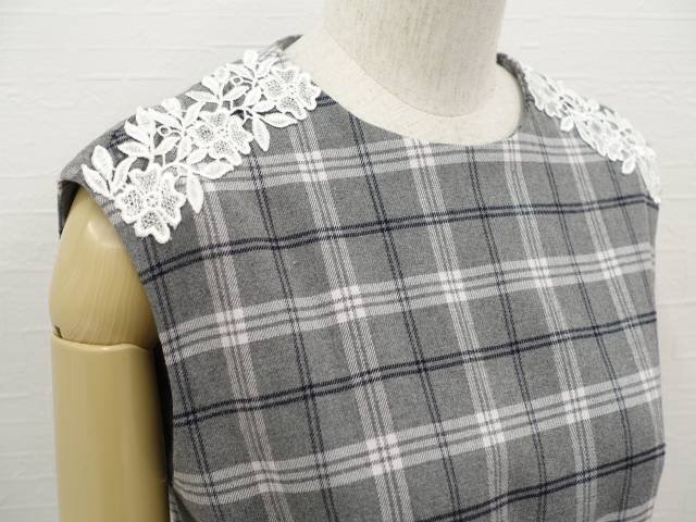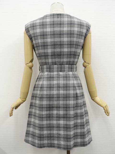 ひざ丈 ラウンドネック 洗えるノースリーブワンピース S グレー×ブラック チェック柄/ホワイト 花柄