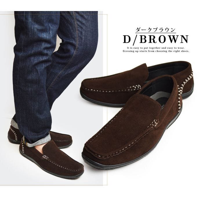 メンズ ドライビングシューズ 軽量 防滑 スエード スリッポン ローファー シンプル フォーマル モカシン 運転靴【エコ配送】 2016