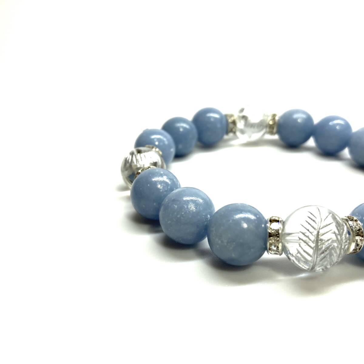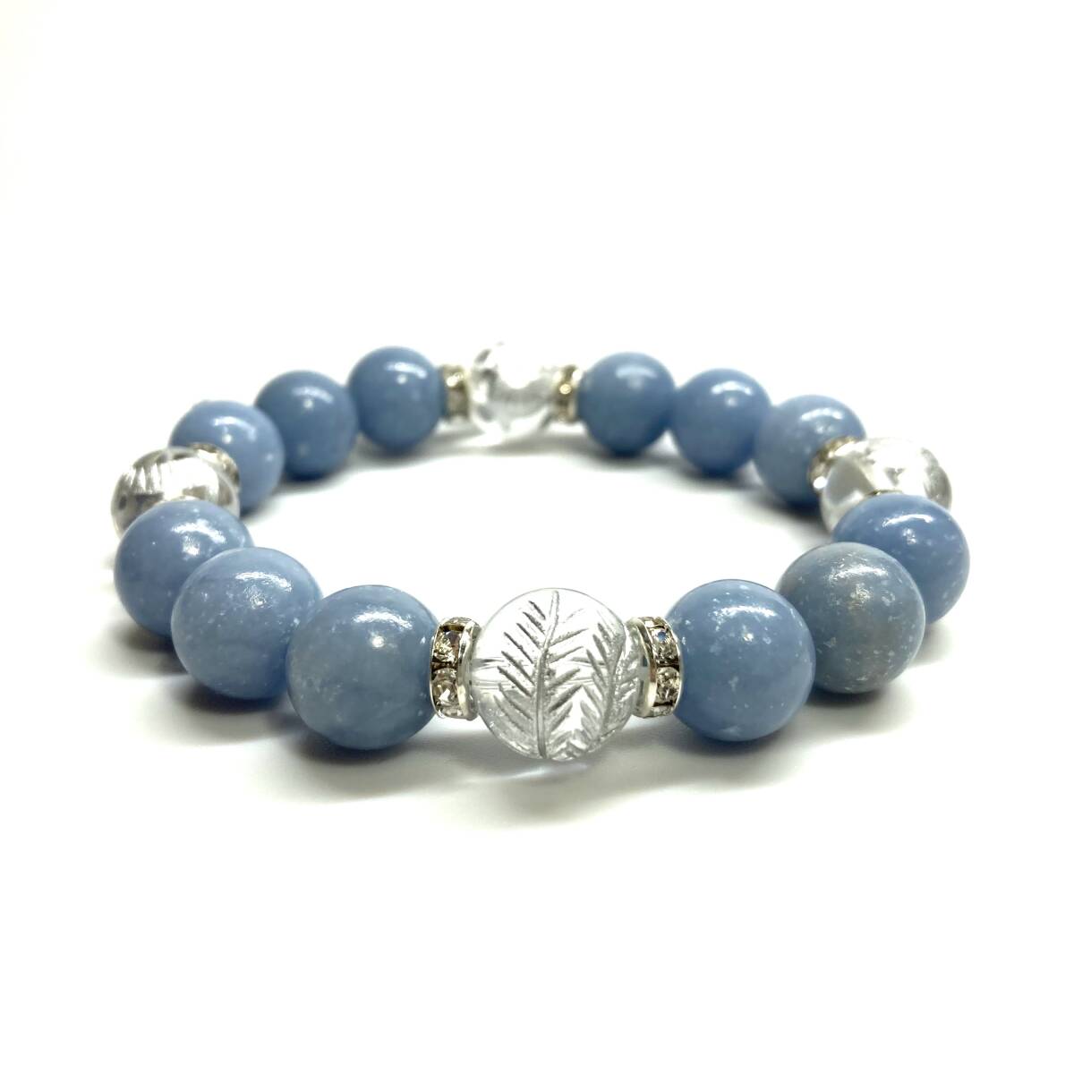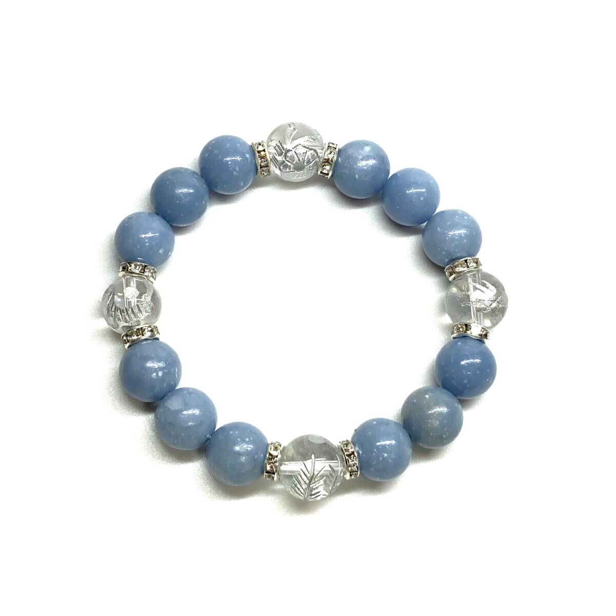 四神獣銀彫水晶×エンジェライト 12mm パワーストーン ブレスレット天然石 青龍 白虎 玄武 朱雀 運気上昇 お守り 金運 四神獸 四神相応 S