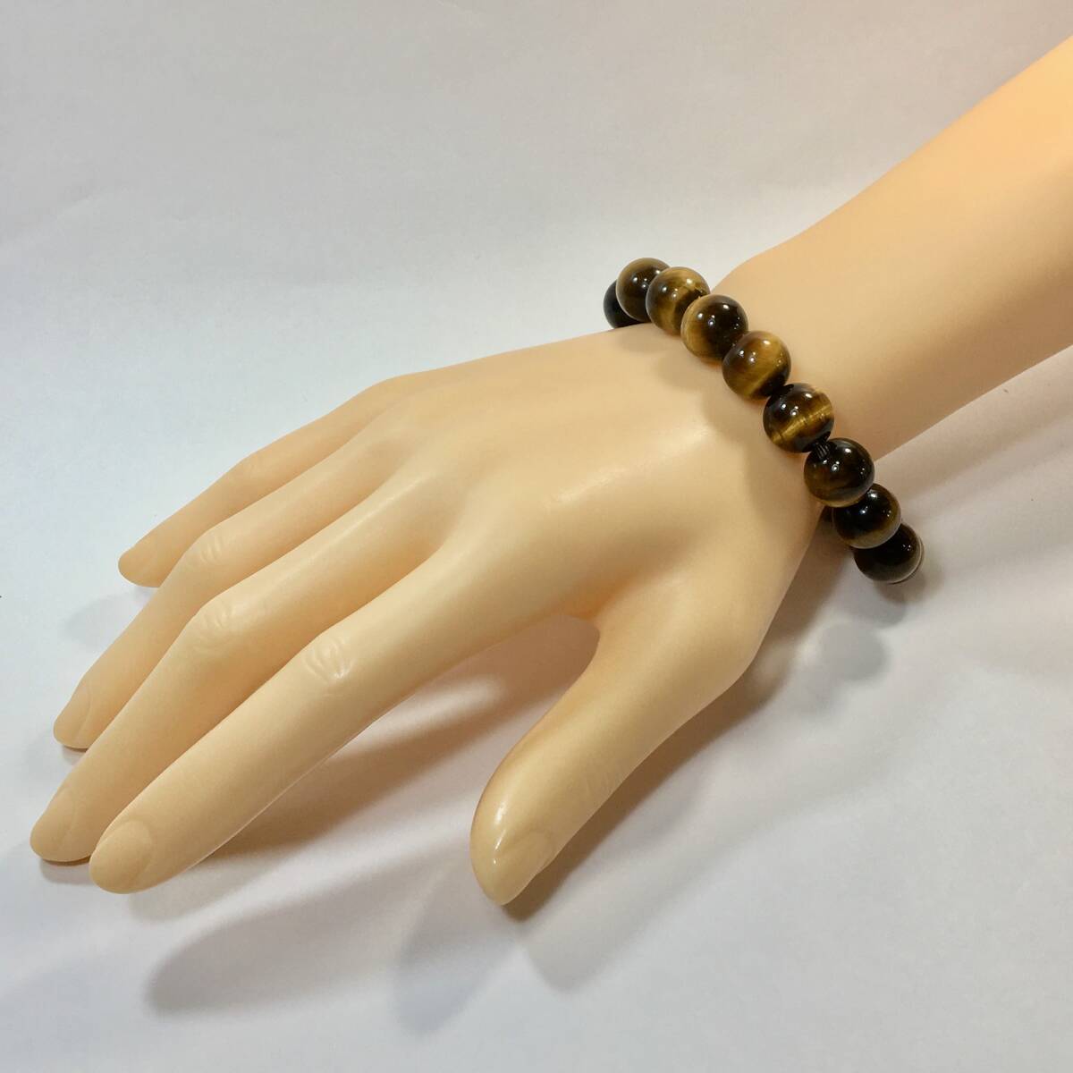 こちらは、タイガーアイの12mm玉を使用したパワーストーンブレスレットです。シンプルなデザインですのでどんなコーディネートとも合わせ易いブレスレットです。程よくインパクトがある12mm玉を使用して内径約17cmです。(サイズ変更の場合は取引ナビにてご連絡をお願いします。) 数に限りがございますので気になる方はお早めにどうぞ。