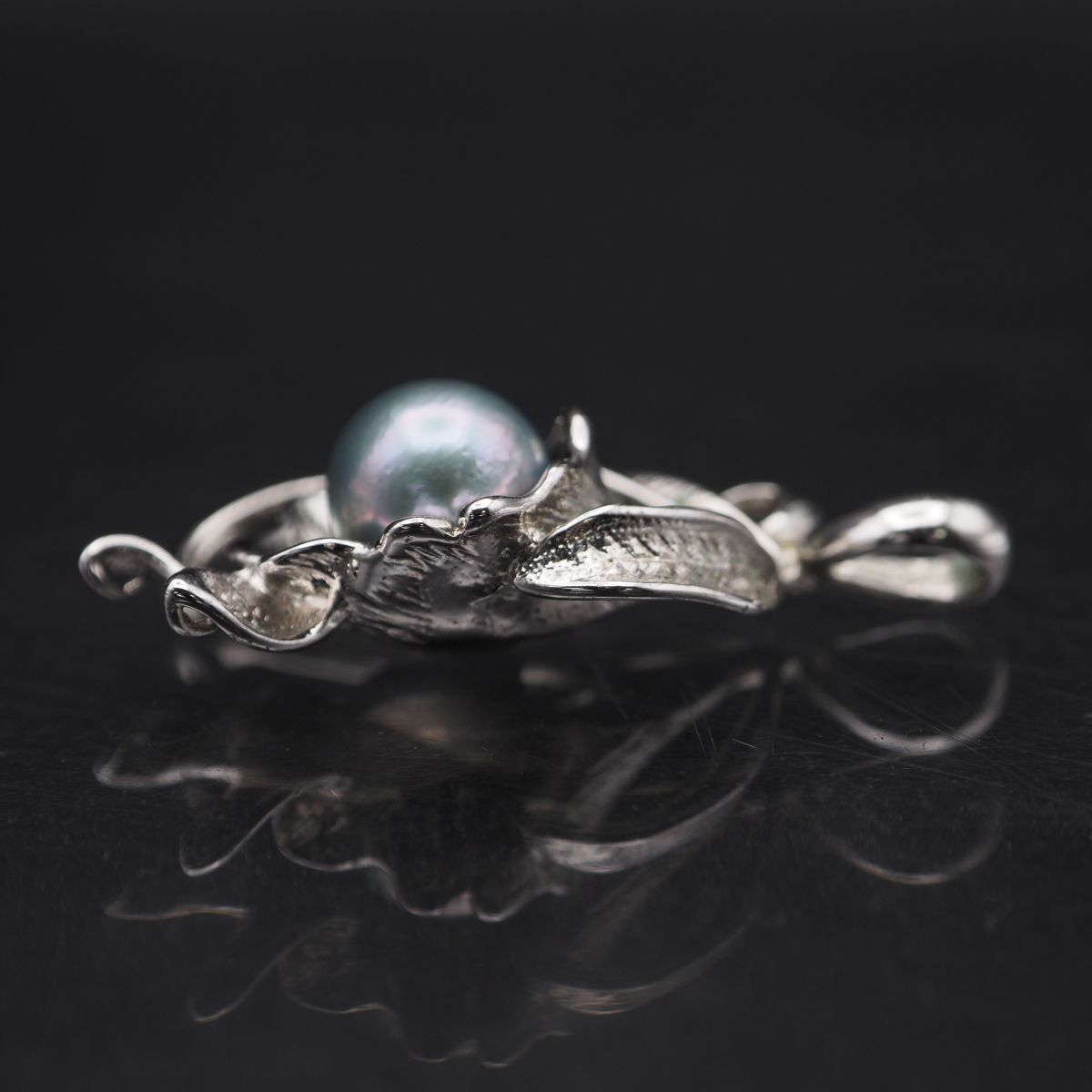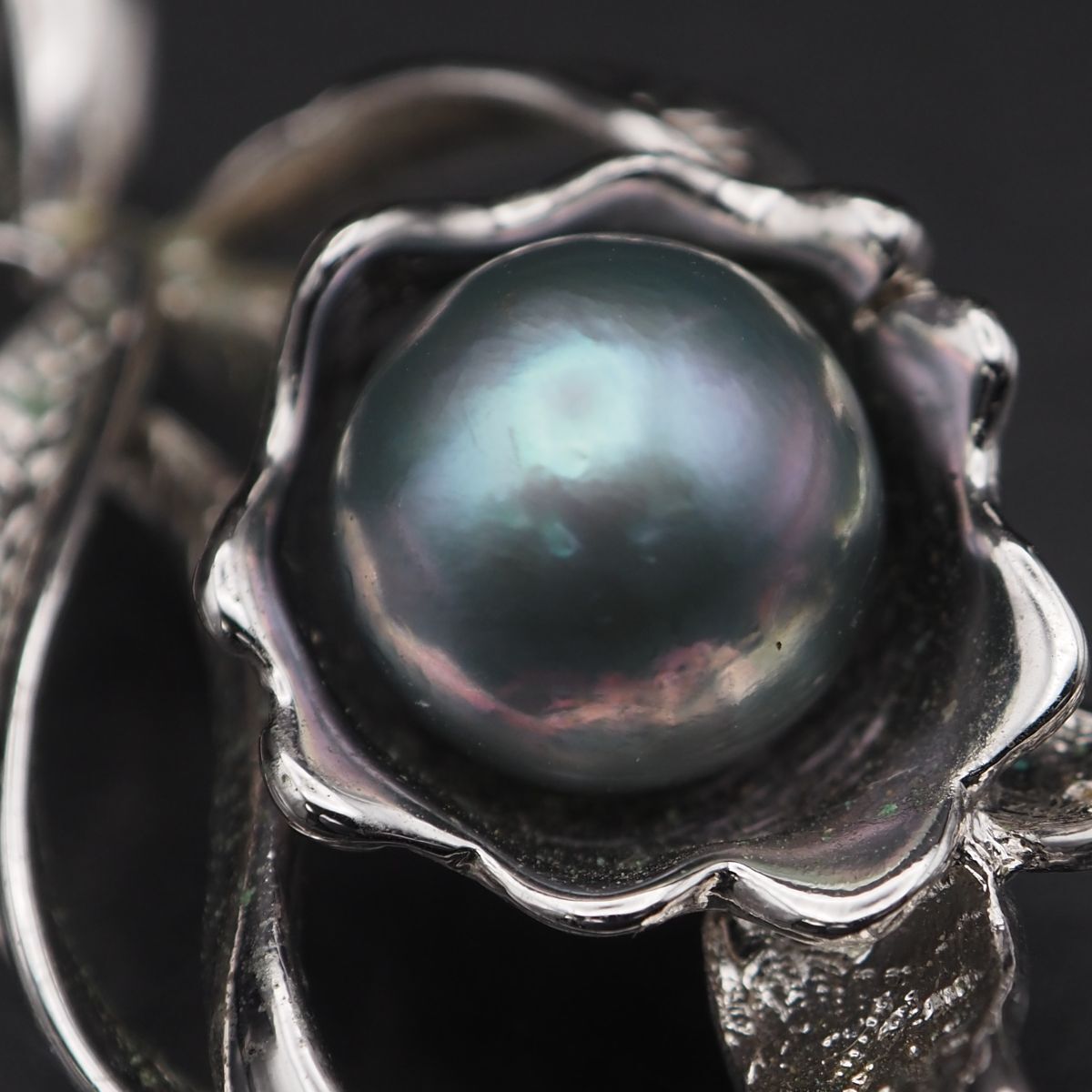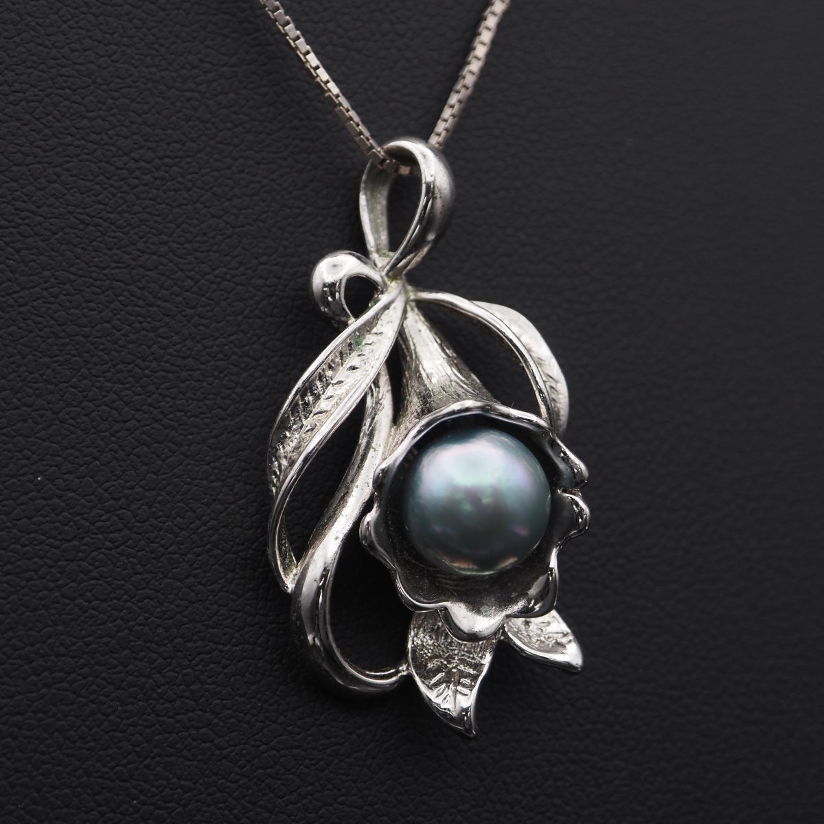 J396 本真珠 8.6mm珠 パール SILVER刻印 ペンダント トップ ブルー系カラー デザイン シルバー チャーム ヘッド 6月誕生石