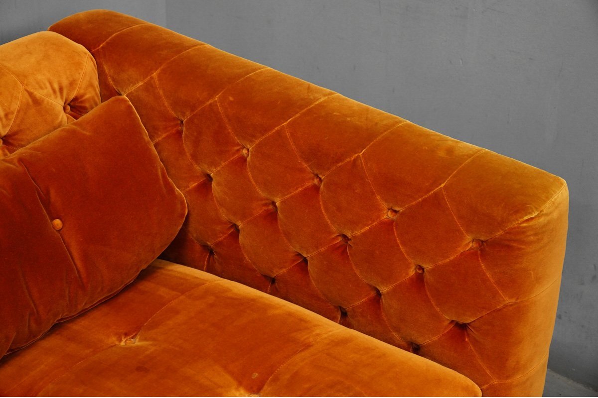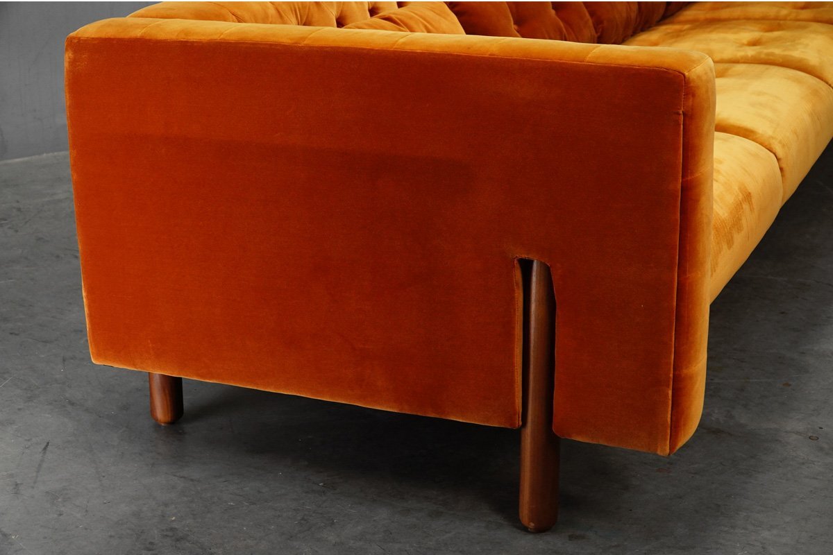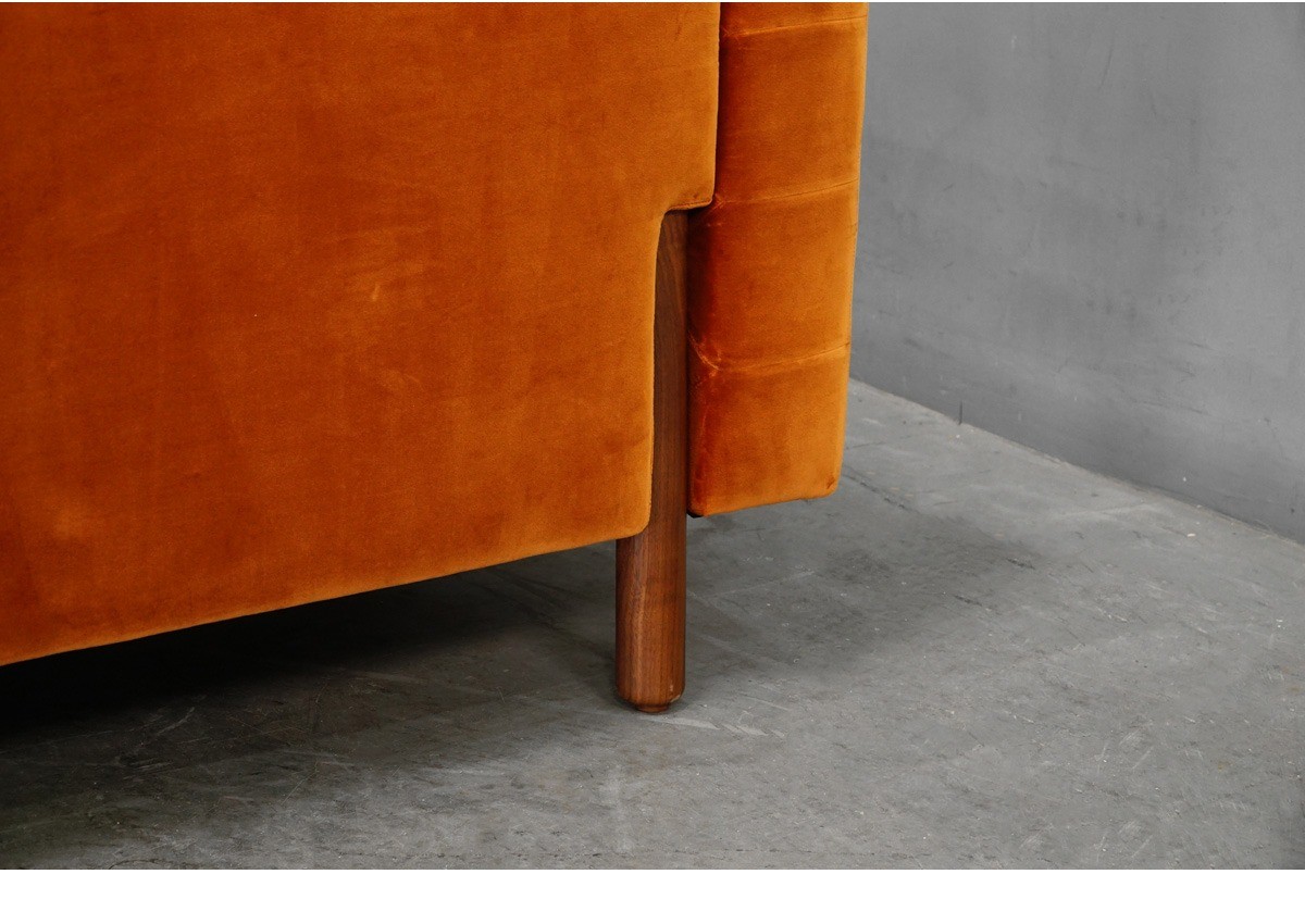 ◇ミラノ旧市街の中心に位置するファッショナブルなレストラン「セント・アンドリュース」のためにジャンフランコ・フラッティーニが1963年にデザインしたこのソファ。オリジナルデザインのスピリットを継承したCB2の正規品です。内側の側面とクッションに施された手縫いのボタンタフト、そしてデザイナーのシグネチャースタイルを象徴するウォールナット材の脚など、当時のディテールを忠実に再現しています。 |