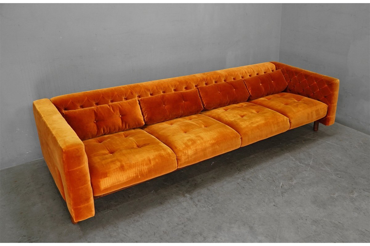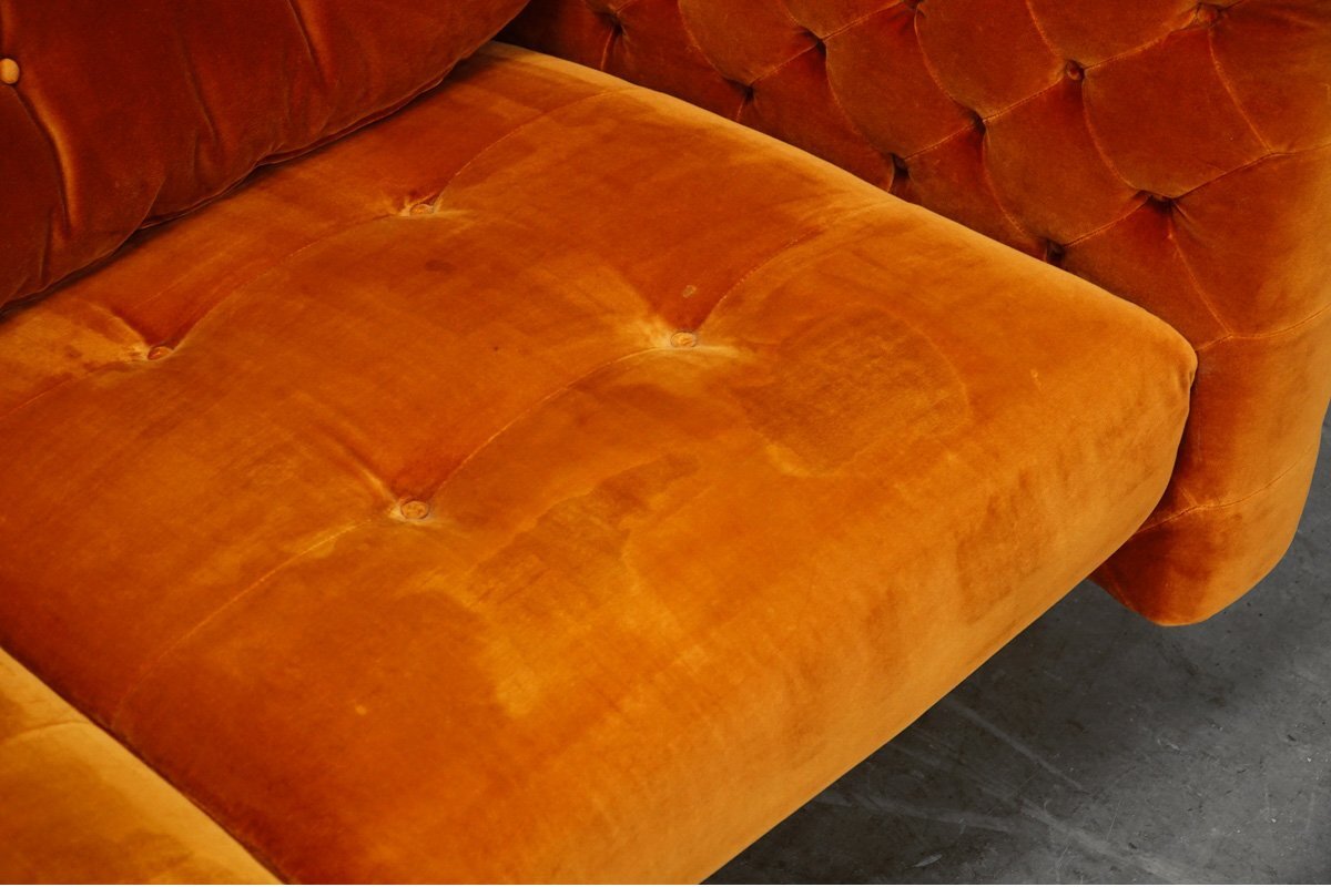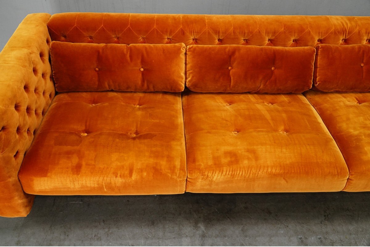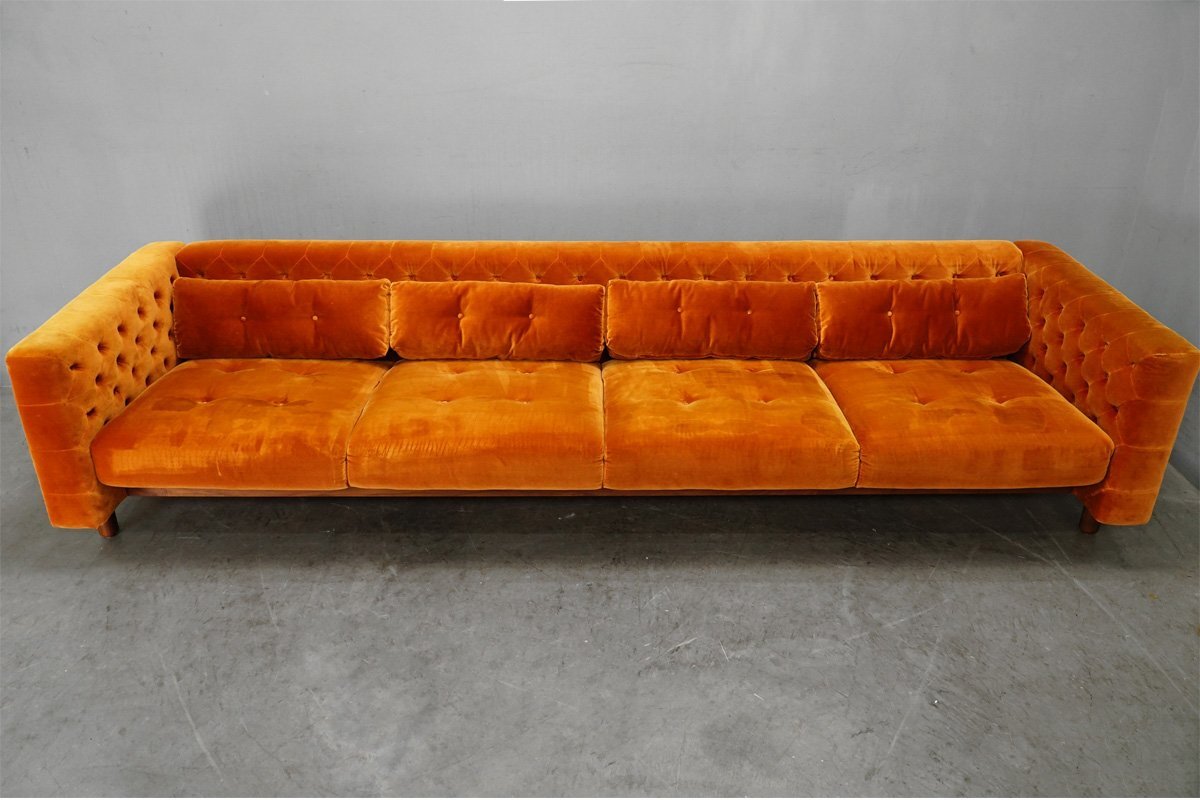 ◇ミラノ旧市街の中心に位置するファッショナブルなレストラン「セント・アンドリュース」のためにジャンフランコ・フラッティーニが1963年にデザインしたこのソファ。オリジナルデザインのスピリットを継承したCB2の正規品です。内側の側面とクッションに施された手縫いのボタンタフト、そしてデザイナーのシグネチャースタイルを象徴するウォールナット材の脚など、当時のディテールを忠実に再現しています。 |