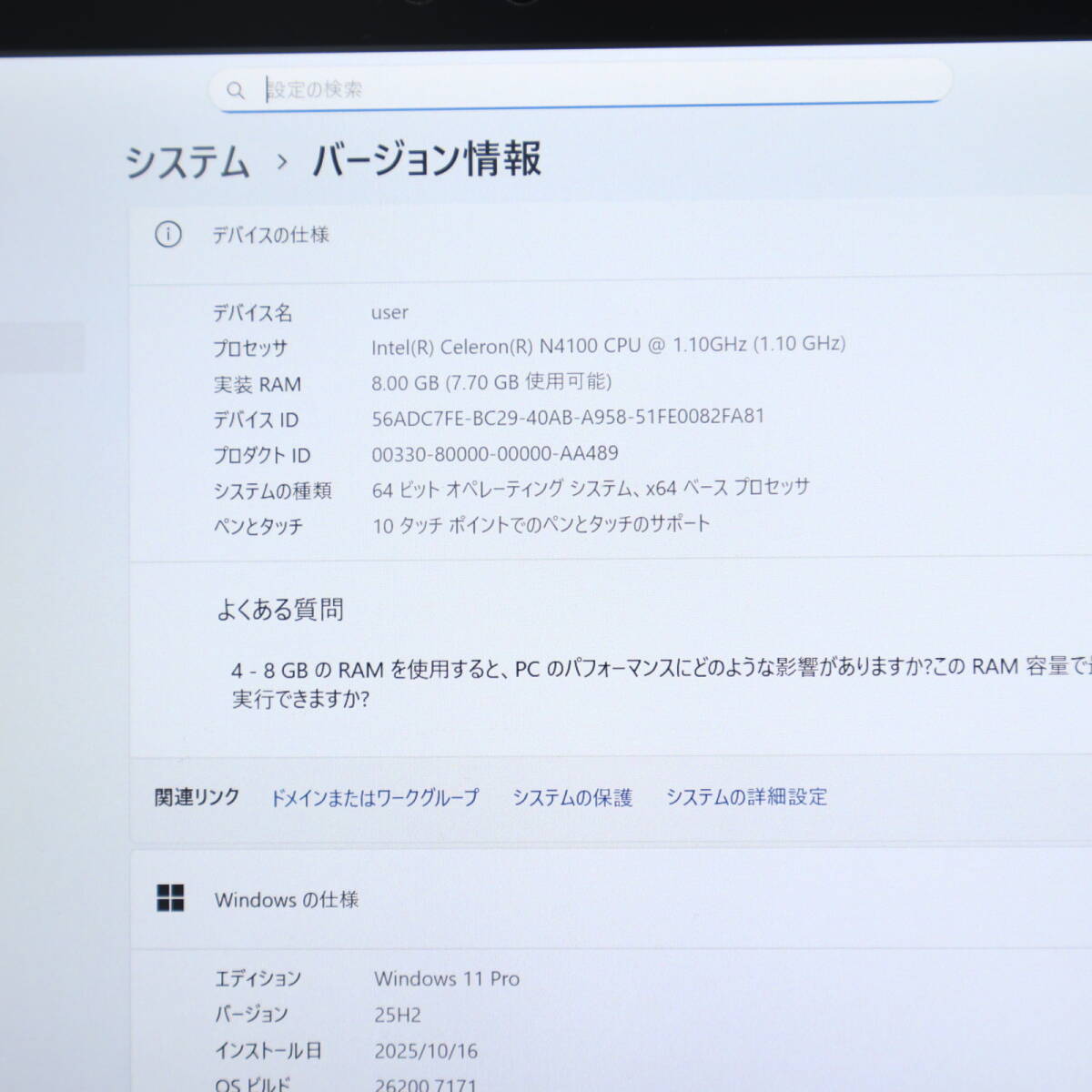 ★防水★美品 SSD128GB メモリ8GB★Q509/VE Webカメラ TypeC 高解像度 Celeron N4100 Win11 MS Office 中古品 ノートパソコン★P94976