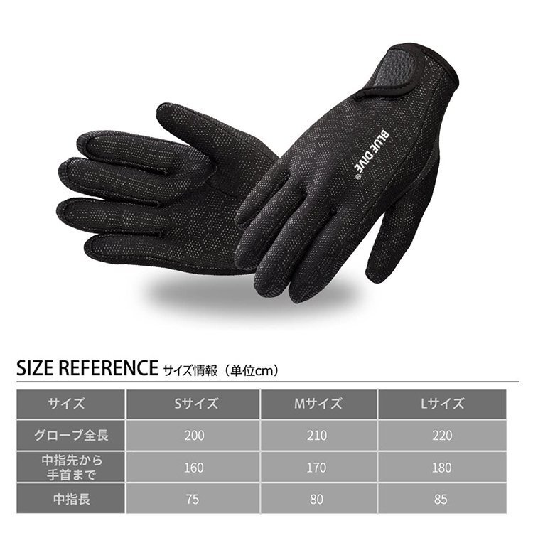 ◆ダイビンググローブ 厚さ1.5mm ネオプレン素材 滑り止め付き フィット感抜群 保温性 ダイビング シュノーケルなどに 岩や魚などの接触によるケガから手を守り【Lサイズ】 DVG003