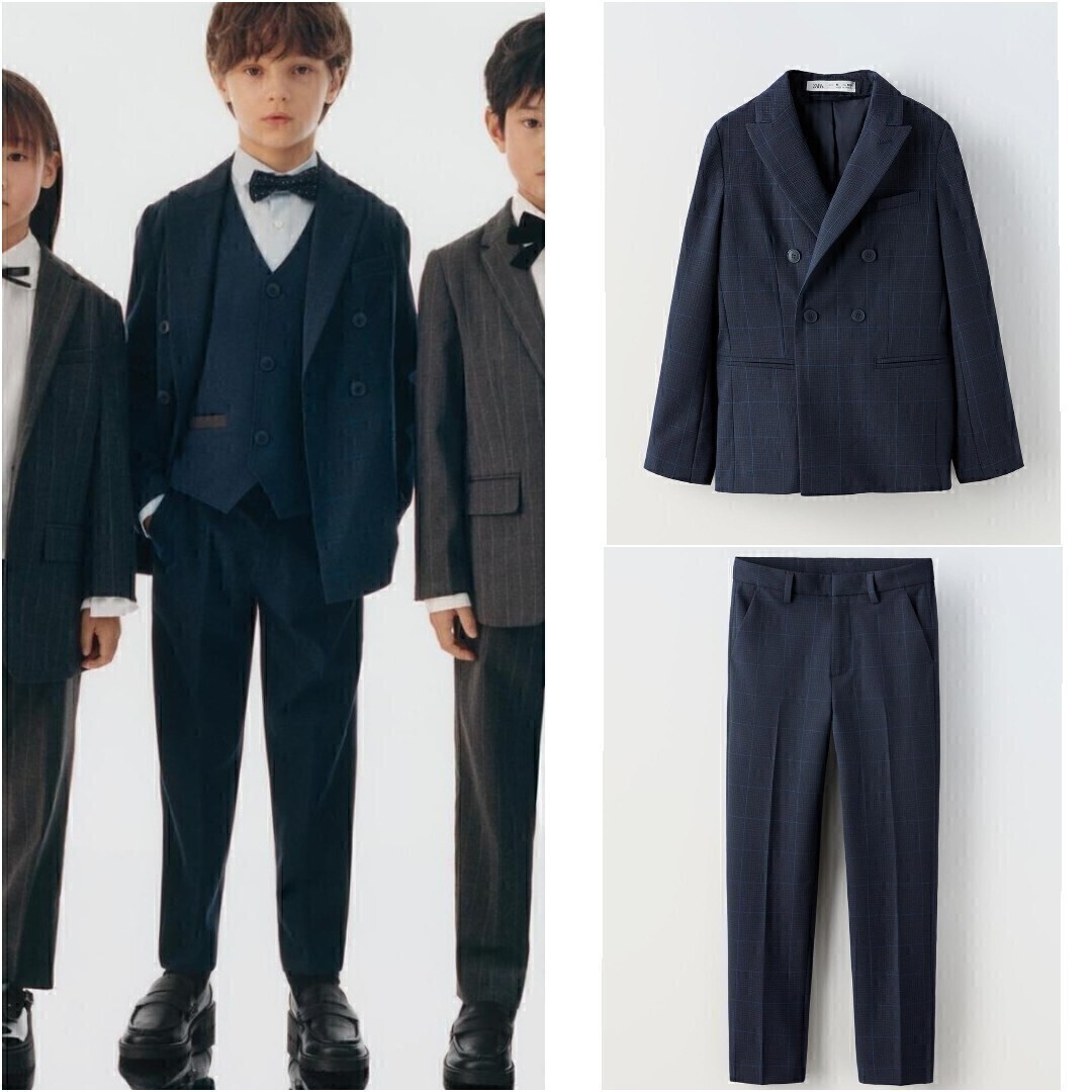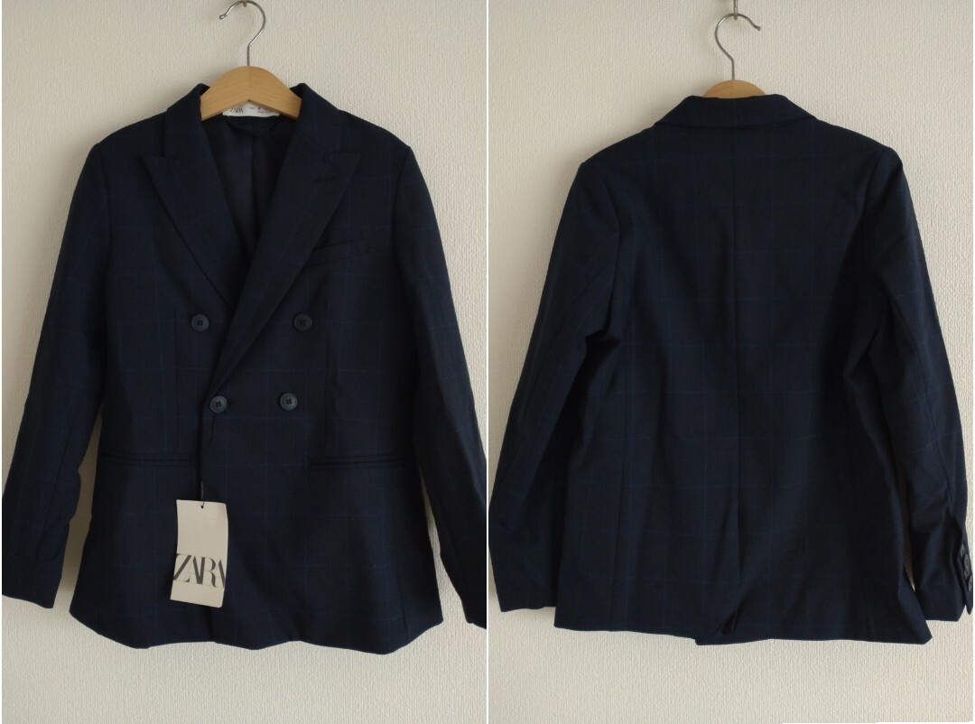 ZARA (ザラ) のチェック柄ダブルブレザー+チェックパンツの上下2点セットです。