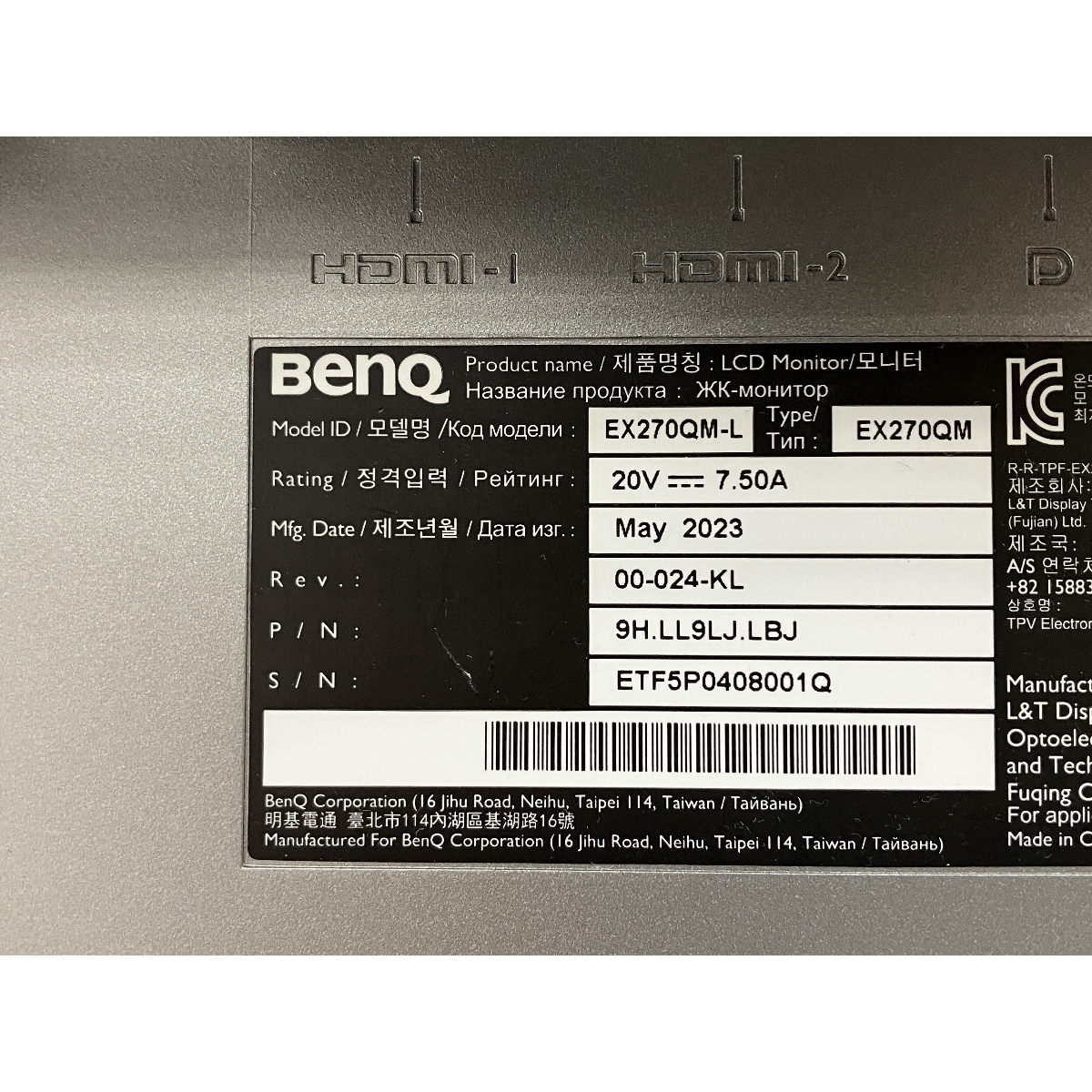 | メーカー名 | BenQ | 型番 | EX270QM-L |