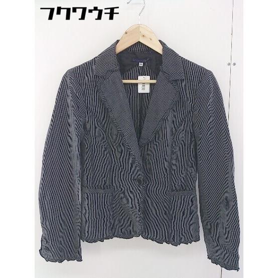 ◇ ungaro fever ウンガロフィーバー ストライプ 1B 長袖 テーラードジャケット サイズ42 グレー ホワイト系 レディース