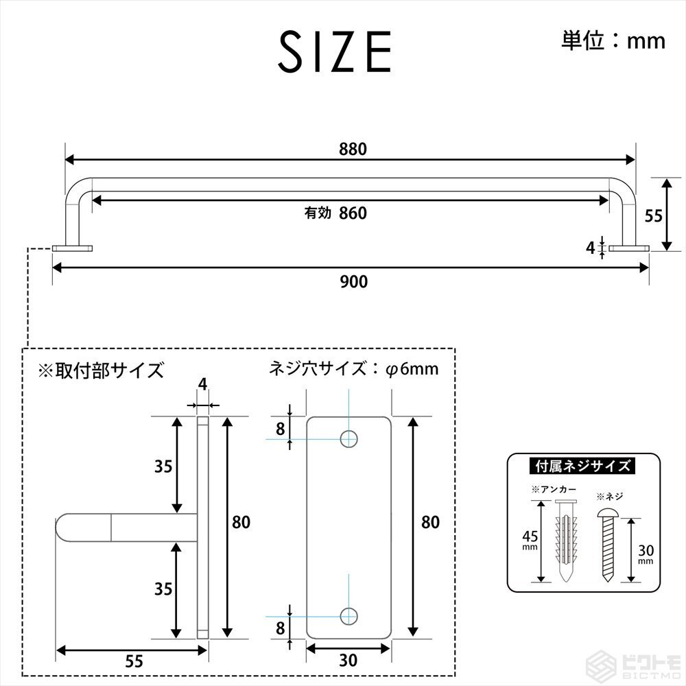 | 付属品 | 取付ネジ、アンカー | 特徴 | アイデア次第で様々な使い方ができるマルチバーです。 | 注意 | ※耐荷重は取り付け強度に依存します。 |