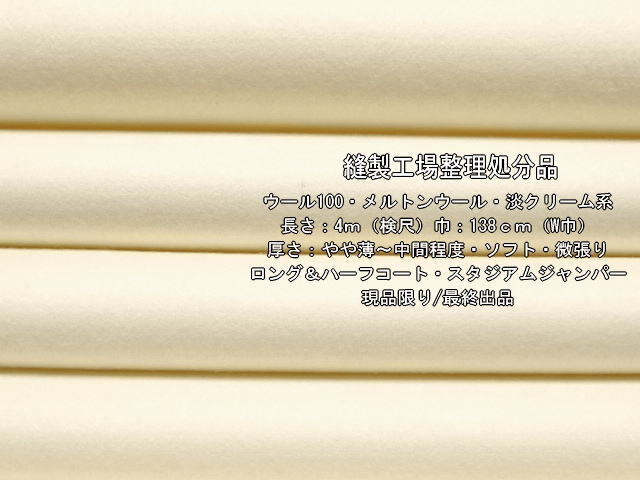 | ウール100 メルトンウール やや薄~中間 ソフト 淡クリーム系 4m | |
