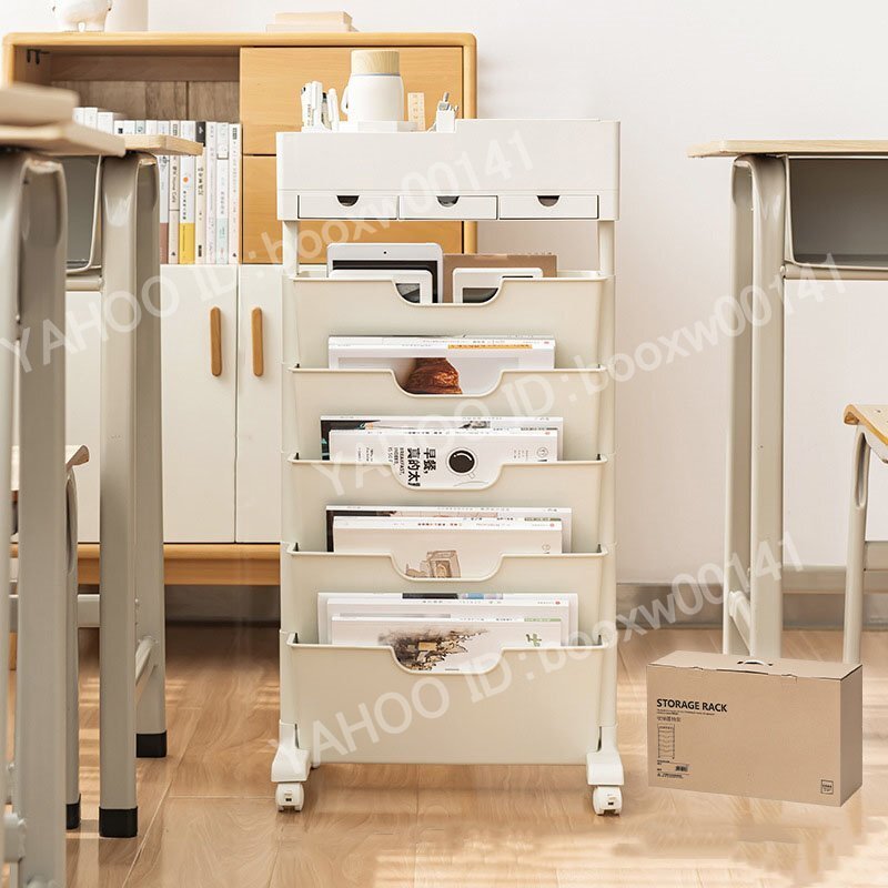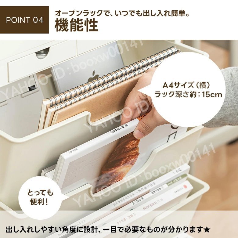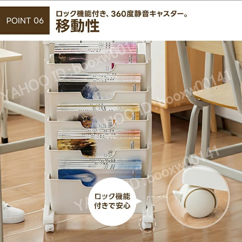 マガジンラック キャスター付 オープンラック 書類収納ラック ファイルワゴン ロック機能付き ブックスタンドラック アイボリー hhw0043.1