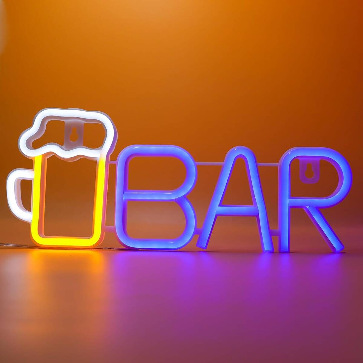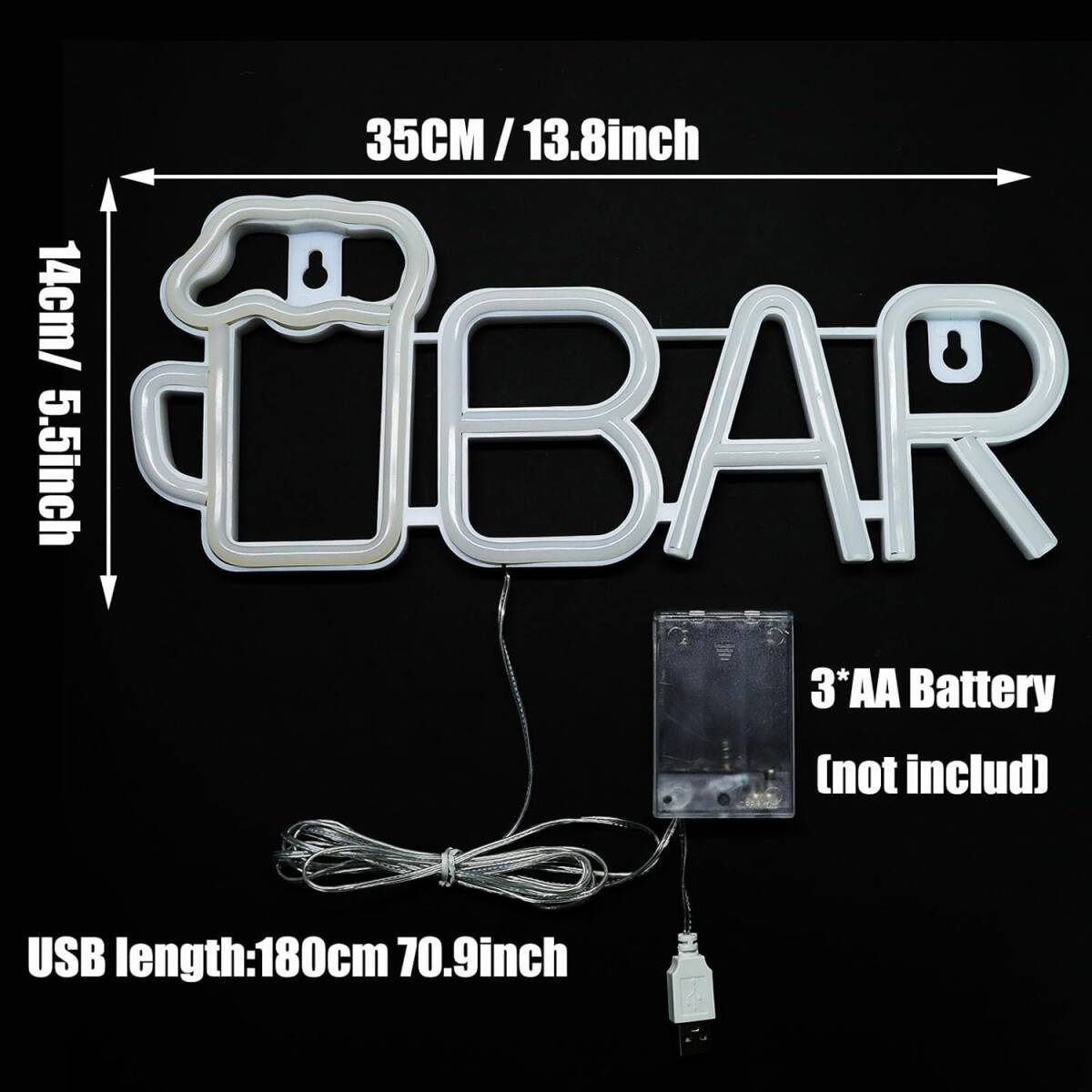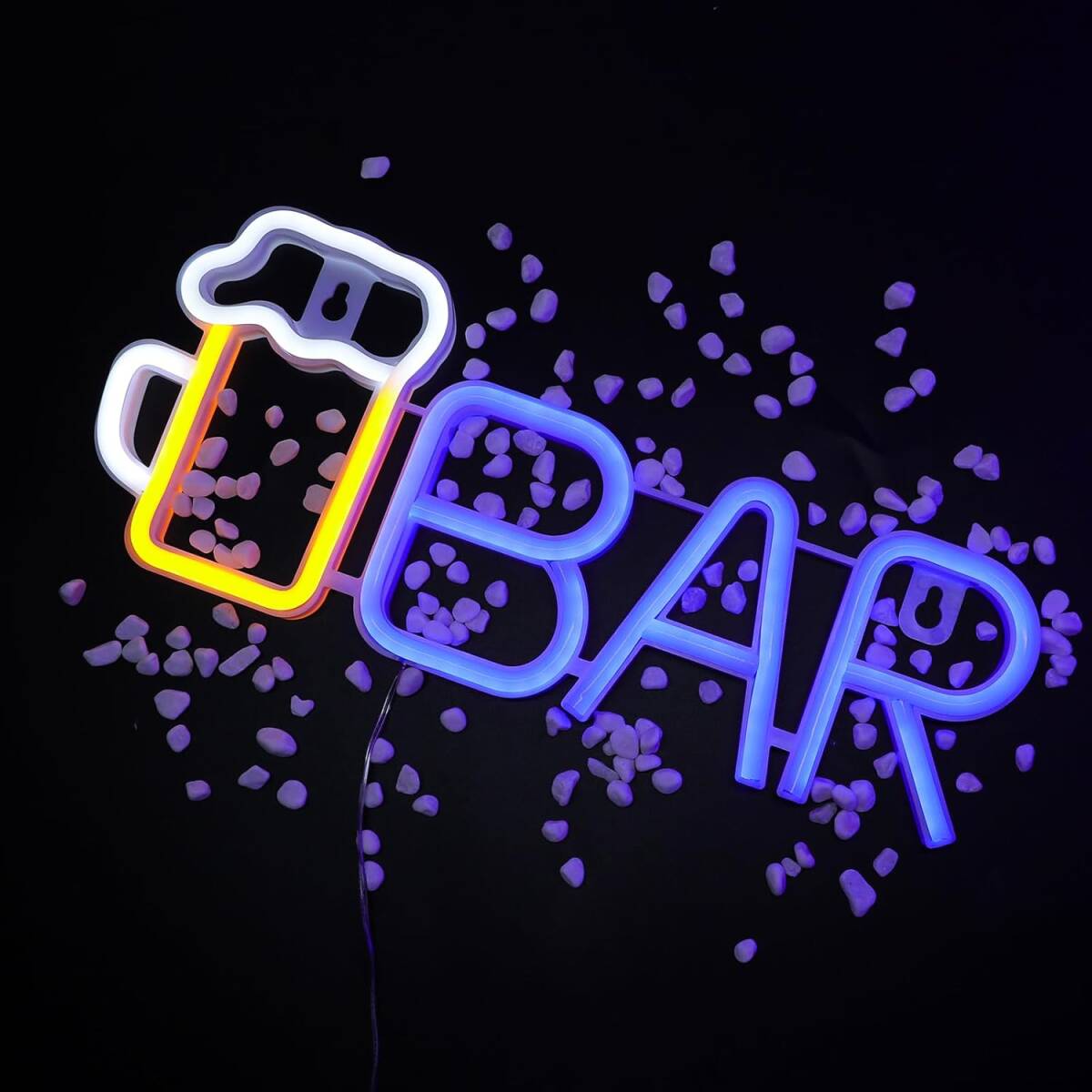 ネオンライト ブルー BAR ビール 35x14cm LEDネオンサイン ゲーミングライト 調光可能 壁掛け USB給電