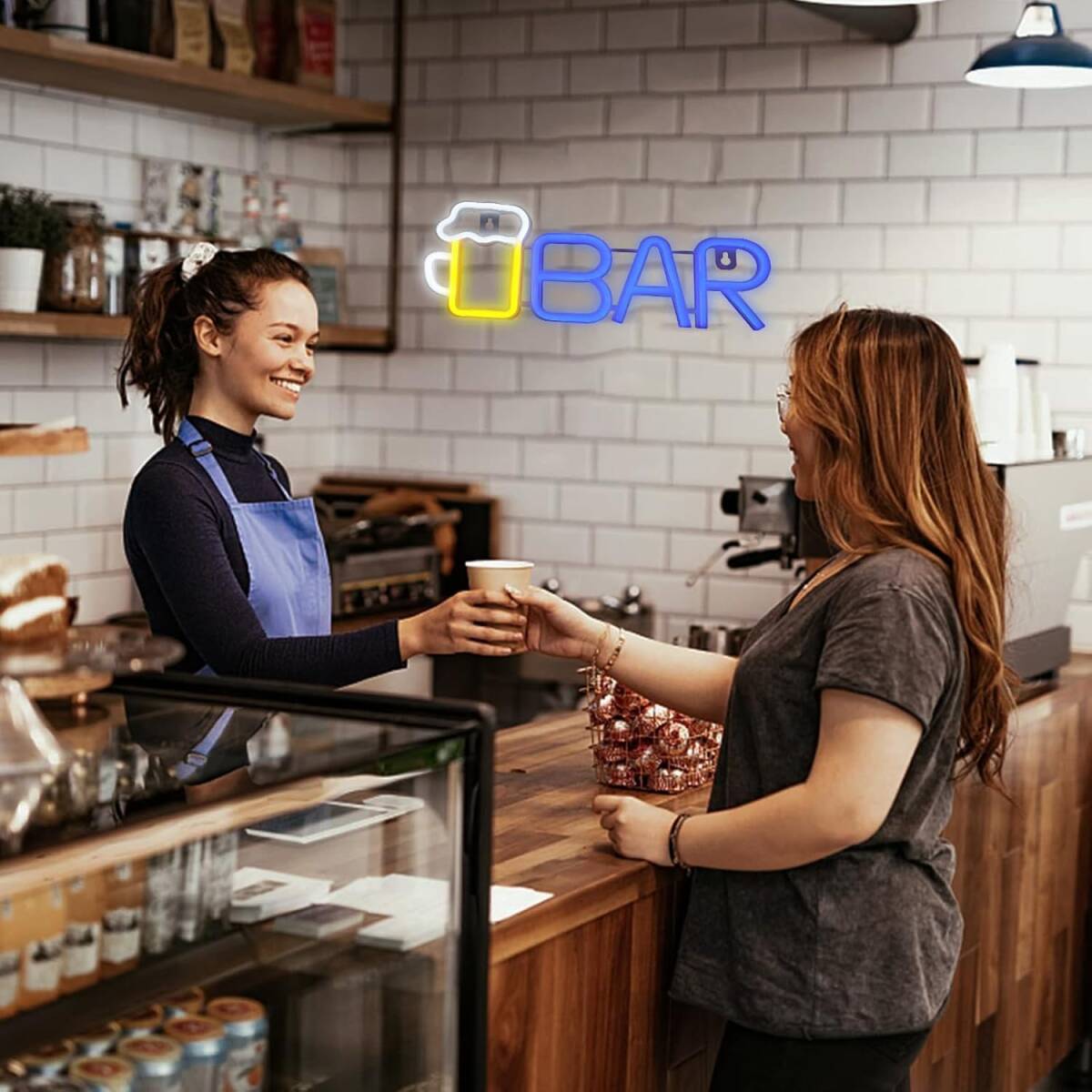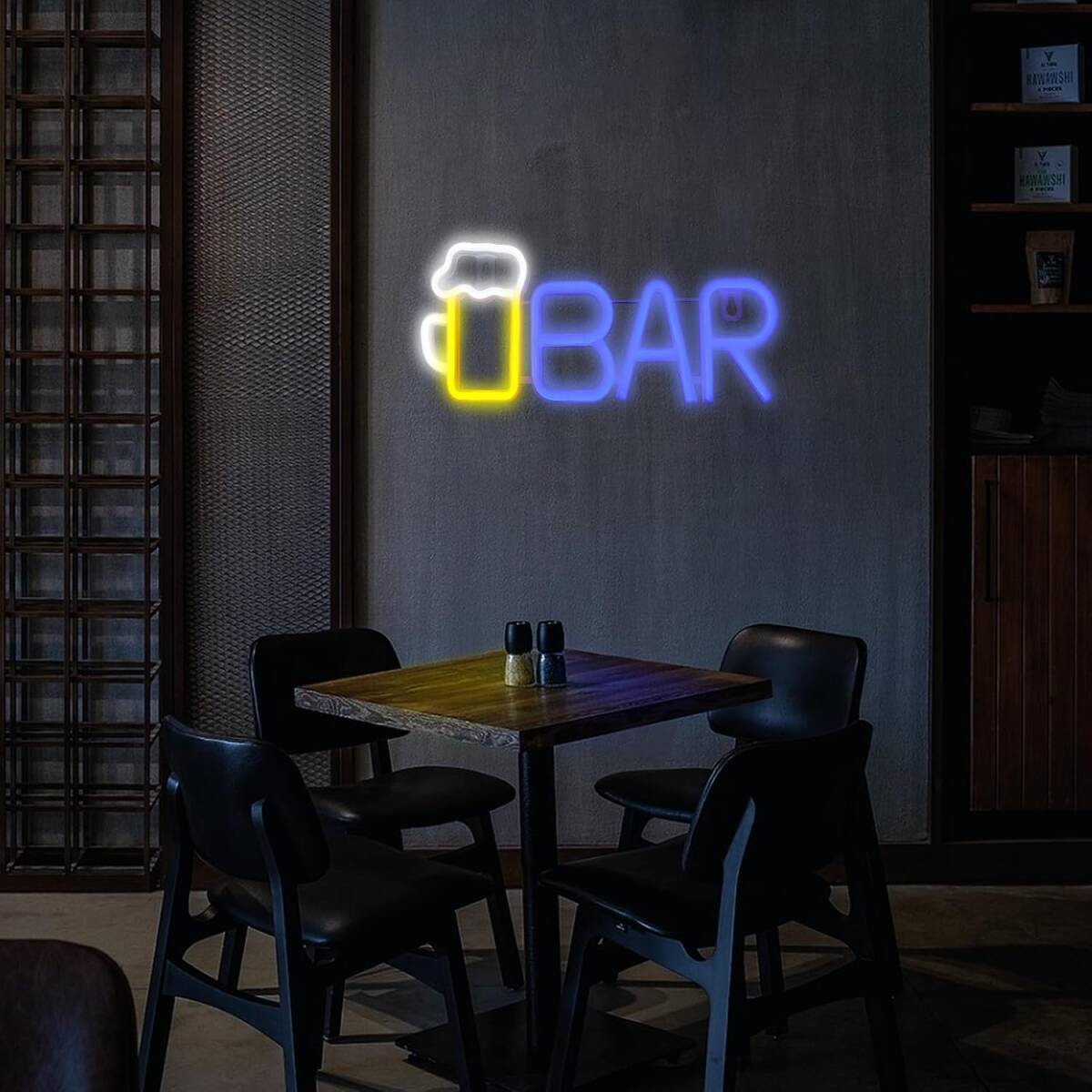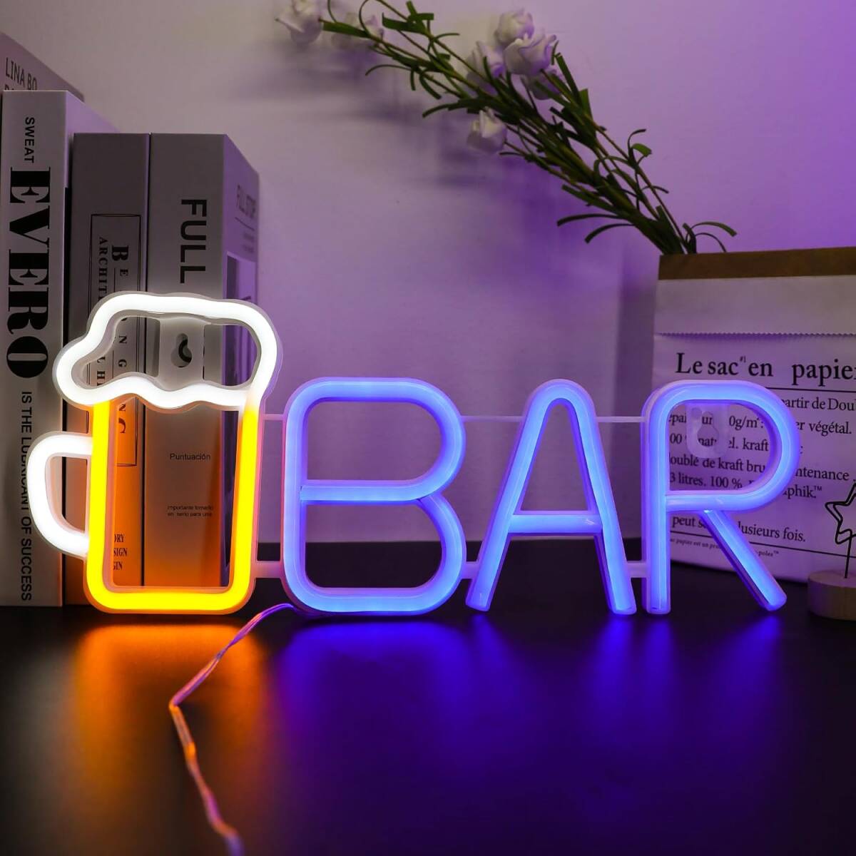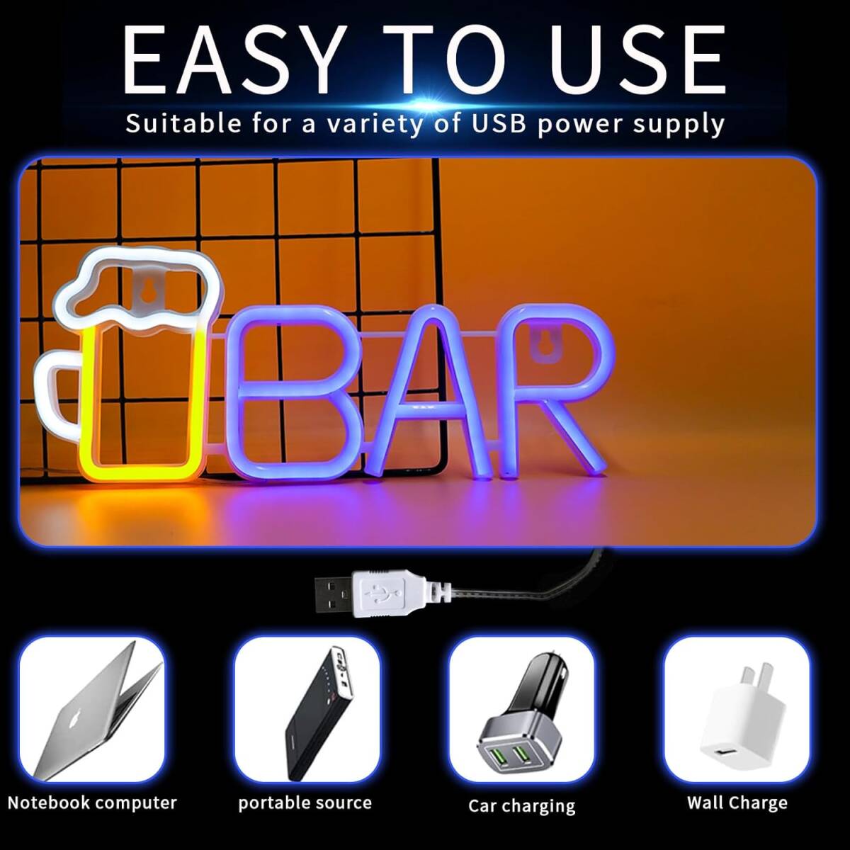 ネオンライト ブルー BAR ビール 35x14cm LEDネオンサイン ゲーミングライト 調光可能 壁掛け USB給電