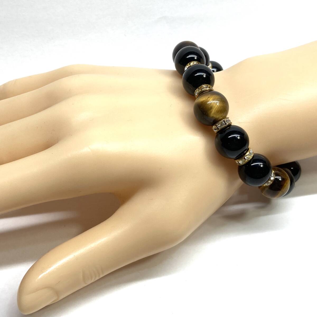 こちらは、モリオンとタイガーアイを組み合わせたパワーストーンブレスレットです。間にはロンデルを挟み高級感あるデザインに仕上げております。程よくインパクトがある12mm玉を使用して内周約18cmです。(サイズ変更の場合は取引ナビにてご連絡をお願いします。) 数に限りがございますので気になる方はお早めにどうぞ。