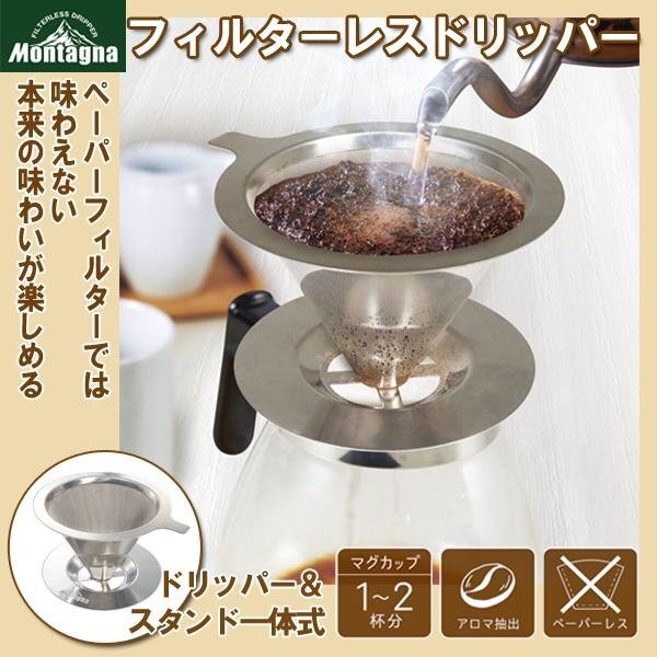 コーヒードリッパー 約1杯~2杯分 ステンレス製 フィルター不要 ペーパーレス 繰り返し使える 送料無料 150T◇ モンターナフィルターレス