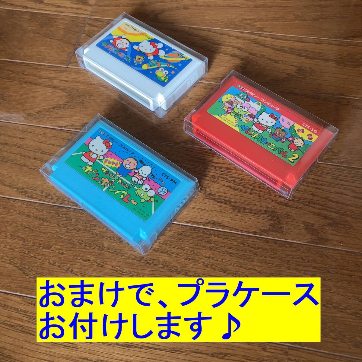 | ★商品説明★ | 数多くの商品の中、ご覧いただきましてありがとうございます♪ ファミコンカセットの 「サンリオカーニバル」 「サンリオカーニバル2」 「サンリオカップ ポンポンバレー」 3本セットです。 NEWファミコンにて動作確認しております。 写真のものが全てです。 (※NEWファミコン本体と液晶テレビは付属しません) カセットの状態については写真からご確認ください。 おまけとして、コレクションを保存する際に使用していた オリジナルのプラケースをお付けします。 (※おまけのプラケースには、私が管理の為、テプラで番号を記入したシールを貼ったものがございます。あくまでサービス品ですのでご了承下さい) (※おまけのプラケースの在庫が残り少しになりました。在庫がなくなった場合は、プラケース無しとなります。) |