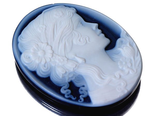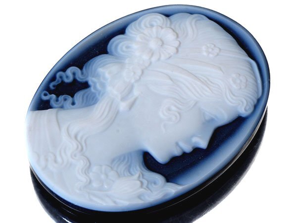 綺麗な女性の彫刻が素敵な高級ブルーストーンカメオルースを激安価格で特別大放出致します!