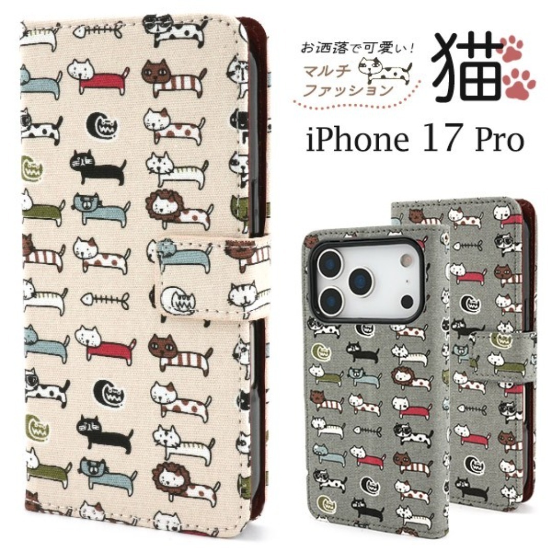 iPhone 17 Pro マルチファッション猫 手帳型ケース/アイフォン スマホケース