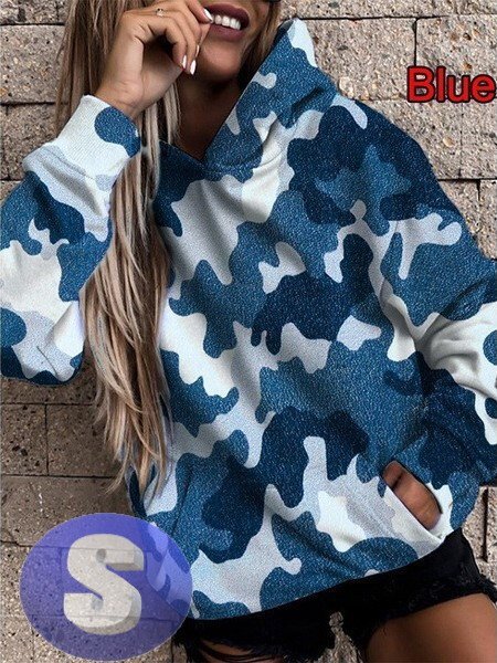 フード付き 迷彩 カモフラパーカー ブルー S トレーナー アウター 防寒 n712