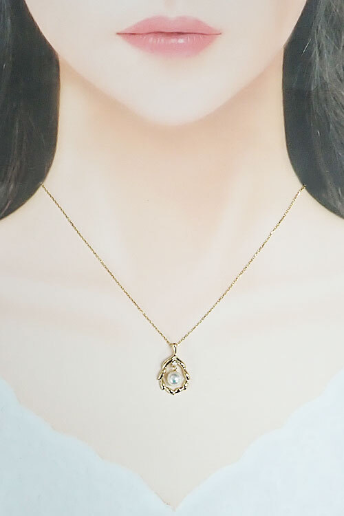 商品名ミキモト アコヤ真珠 ネックレス ダイヤモンド K18イエローゴールド MIKIMOTO 葉 リーフ 植物 ボタニカル 透かし 揺れる