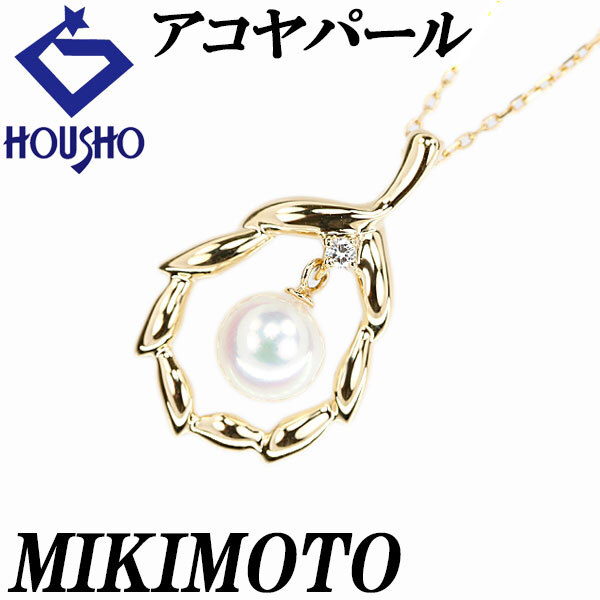【セール開催中】ミキモト アコヤ真珠 ネックレス ダイヤモンド K18YG MIKIMOTO 葉 リーフ 植物 ボタニカル 透かし 揺れる 宝正 902682