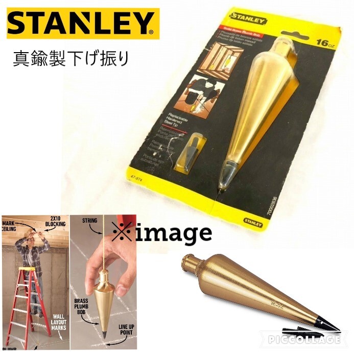 【米軍放出品】未使用品 下げ振り 真鍮 454g(16oz) 垂直 測定 建築 大工 DIY 工具 STANLEY 47-974 (コンパクト) ☆BI12QK-W#25
