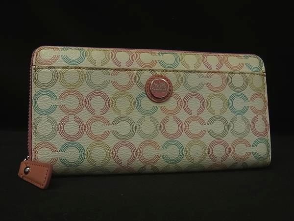COACH コーチ オプアート PVC ラウンドファスナー 財布 ウォレット 札入れ 小銭入れ レディース アイボリー系×ピンク系 DI6326