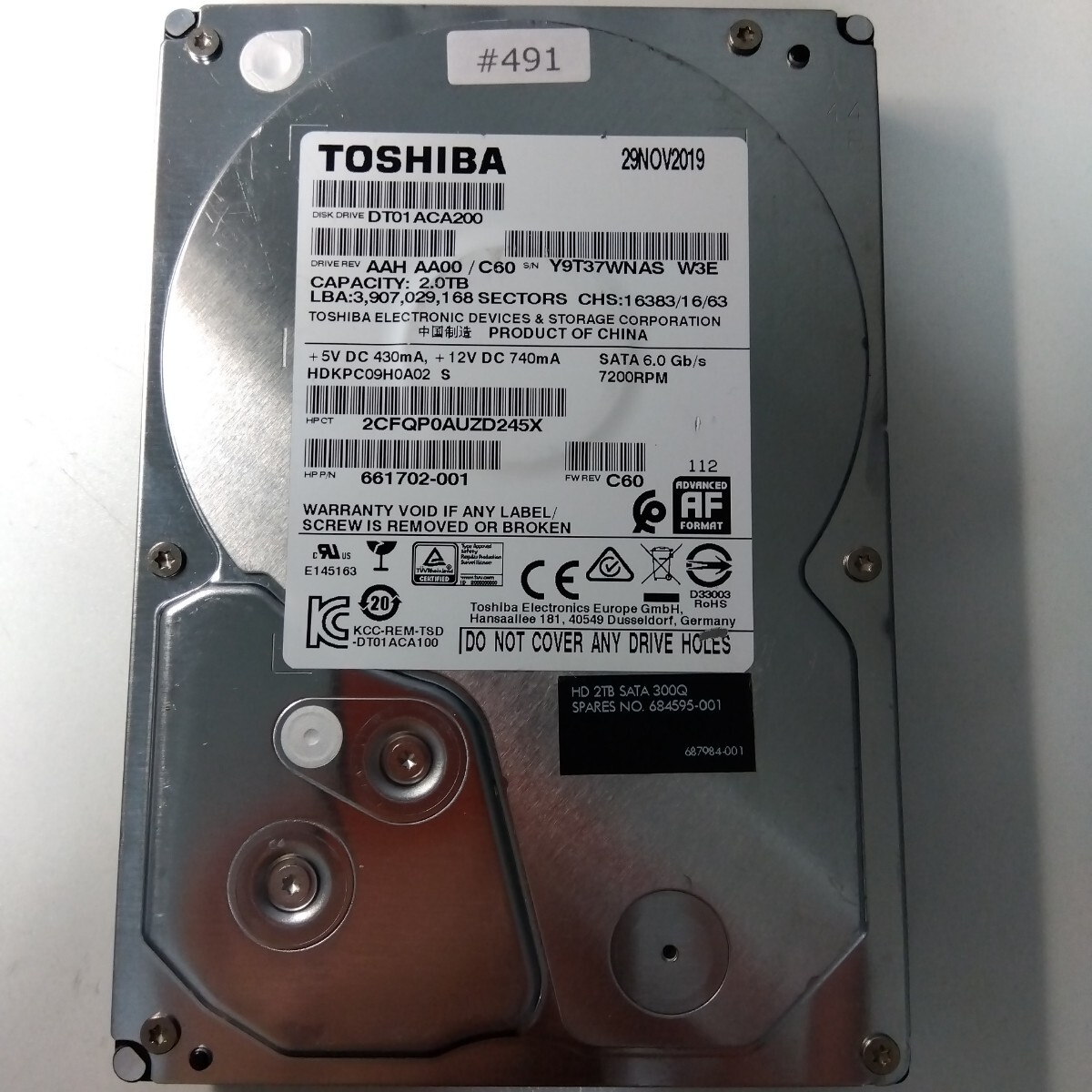 HDD 2TB 3.5インチハードディスク / Crystal DiskInfo 正常 / #491 / TOSHIBA DT01ACA200