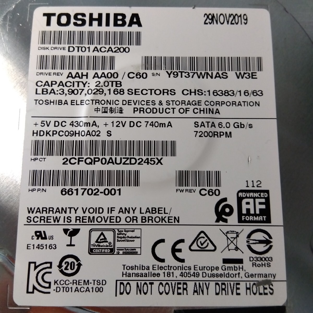TOSHIBA DT01ACA200 [2TB/3.5インチ内蔵ハードディスク] [7200rpm] SATA 6Gb/s/バルク品