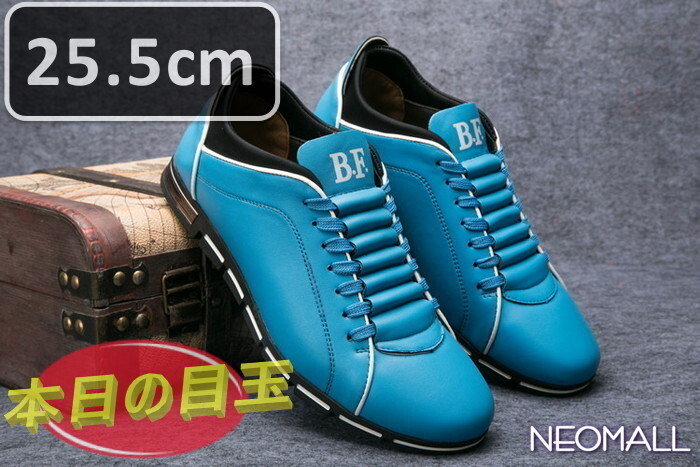 ☆ 激安 メンズ スニーカー 25.5cm ブルー 靴 シューズ 防滑 ランニング ジョギング 通勤 通学 旅行 【784】