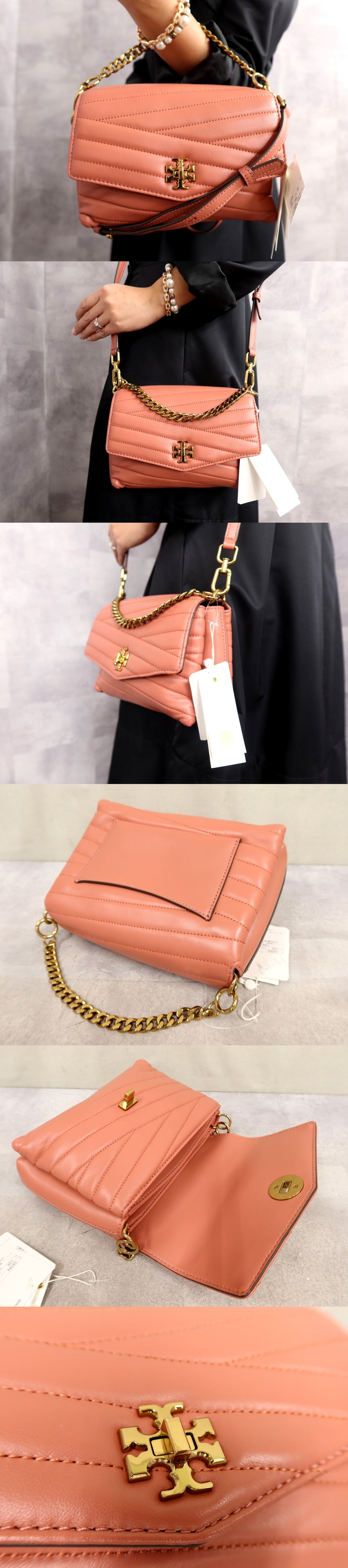 超美品●トリーバーチ●キラシェブロン●キルティング カーフ レザー 本革●2way チェーン ハンド バッグ●コーラルピンク●G金具●Js63673