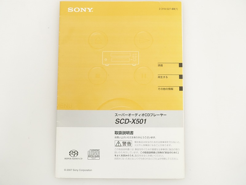 ■メーカー : SONY ■型番 : SCD-X501 ■外径寸法 : W280×H111×D267mm ■重量 : 3.9kg 【商品の状態 当店での確認内容】 CDは問題ございませんが、SACDは再生できません。 リモコンは付属しておりません。 ※上記により【難あり商品】としての出品となります。 「商品の状態」に関しましては当方主観の目安となります。外観などは中古品で個人差もありますので詳細は画像にてご判断ください。 画像にて不明な点はご質問下さい。 出品商品は画像のものですべてになります。画像に写っているもの以外は付属いたしません。 ※注意※ ヤフオクのシステム上、送料表記が送料未定となっておりますが、送料に関しては全て有償となりますので下記を参照下さい。 【送料 全国一律 2,080 円 沖縄、離島は別途お見積り】 ※送料がお得になるサービスです(下取りシステムのご案内です) ストア決済利用時にクレジットカードやPayPay残高/PayPayクレジットを利用の方は留意点がございますのでこちらを参照上ご利用ください。 当ストアでは商品を安全にお届け出来るよう提携運送会社と協議の上、発泡緩衝材や強度段ボールの使用等 運送会社が指定する梱包方法や資材を採用しております。 より安全にお届け出来るよう商品仕様により梱包サイズが大きくなる場合や個口数が増える事がございます。 【当ストアオークションルールを入札前に必ずご確認ください。】 【落札後の取引手順】 ・落札後は取引ナビにて、必要事項をご入力後、送信ください。 取引終了後48時間(土、日は除く)以内に入力をお願い致します。 ※ご連絡が頂けない場合は落札者様都合でのキャンセルとさせていただきます。 ・落札代金(商品代金+消費税+送料)の入金をお願い致します。 ※大型商品の場合は送料確定後の決済となる為取引ナビを入力頂き、当ストアより送料のご案内が来るまでお待ちください。(土曜、日曜、祝日の場合は翌営業日より順次ご案内いたします) ・お支払い方法はクレジットカード/PayPay残高/PayPayクレジット/PayPay銀行/ゆうちょ銀行のみです。 ※商品代金引換(代引き)のお取り扱いはしておりません。 ※領収証の発行が必要な方はご連絡ください。 ※銀行振込の際の振込手数料はご負担願います。 ・入金確認後に出荷手配を致します。 (原則入金確認後3営業日以内に発送いたしますが、大型や重量のある製品はお時間をいただく場合もございます。) ・発送は当店指定の運送会社の元払いのみでの発送となります。 ※他の運送会社、送料代引き等は致しかねます。 ※落札者様ご自身での運送会社の手配いただく事も可能ですが荷物事故の責任の所在の問題上、梱包は致しかねます。 ※店頭にお越し頂き手渡しも可能(福岡市早良区)です。ご希望の方はご落札後にご連絡下さい。 ・大型/重量物商品の送料につきましては商品の特性上、荷降ろし状況等により送料が大きく前後し運送業者に別途見積りが必要な為、早めのお問い合わせにてお見積り上、入札をお願い致します。 【初期不良の保証について】 ・商品到着後の初期動作不良、また配送中の事故による破損、不具合が有る場合は、商品発送後10日以内に当ストアまでご連絡ください。当ストアでは修理での対応を優先させて頂きますが、修理不可の場合は全額返金させて頂きます。 (商品代金+消費税+送料のお支払い頂いた金額となります) 【初期不良の保証の対象外について】 次の場合は保証の対象外となりますのご留意ください ・ジャンク商品、現状商品、難あり商品での出品商品。 ※難あり商品に関しましては動作確認時に一部動作不良が確認された商品になり、記載している動作確認以外にも、動作不良がある可能性もございます。こちらに関しましても保証対象外となりますことをご理解ください。 ・年代物のオーディオなどで、当店にてわからない範囲で部品が交換されている場合 ・楽器類の特殊機材(マイクロスコープ等)での確認までは行っておりません。気になる方は事前にご質問いただくか、入札をお控えください。 ※初期不良に関しましては【商品の状態】に記載のもの、またそれによって起因する動作不良は対象外です。 ※商品発送後10日を過ぎてのご連絡は対応が出来ませんので、商品が到着しましたらお早めに確認をお願い致します。 【メーカー保証の加入・継承】 ・未使用品、展示品やメーカー保証期間が残っている商品に関しまして、メーカー保証の加入、継承が必要な方は、落札後取引ナビ内にて当ストアにお知らせください。商品発送までにご連絡いただけない場合、メーカー保証の手続きを承れない場合があります。 【評価について】 ・評価不要の場合、必ず取引ナビの「要望欄」にてお知らせください。それ以外でご連絡をいただいた場合、対応できない可能性がございます。一度行った評価はシステム上取り消しが行えませんのでご了承ください。 【入札削除・キャンセルについて】 ・入札後はトラブル防止の為いかなる事情がおきましても入札