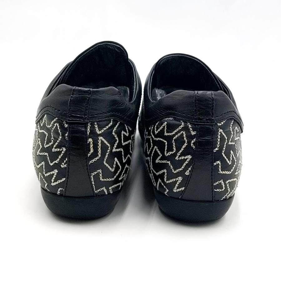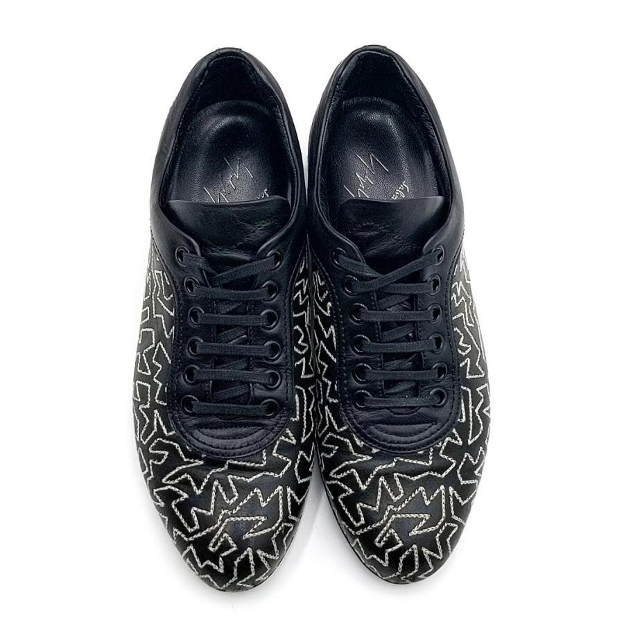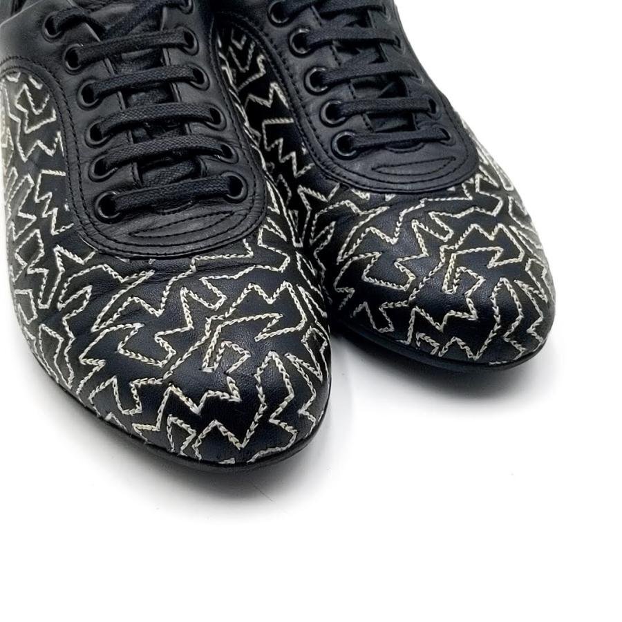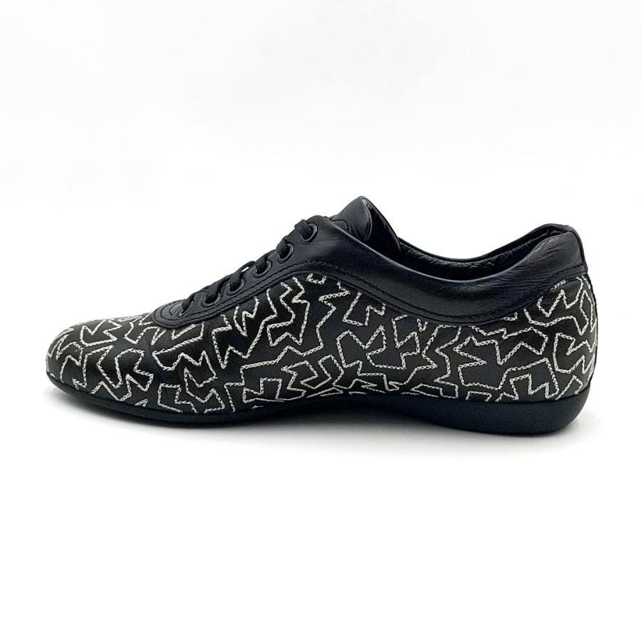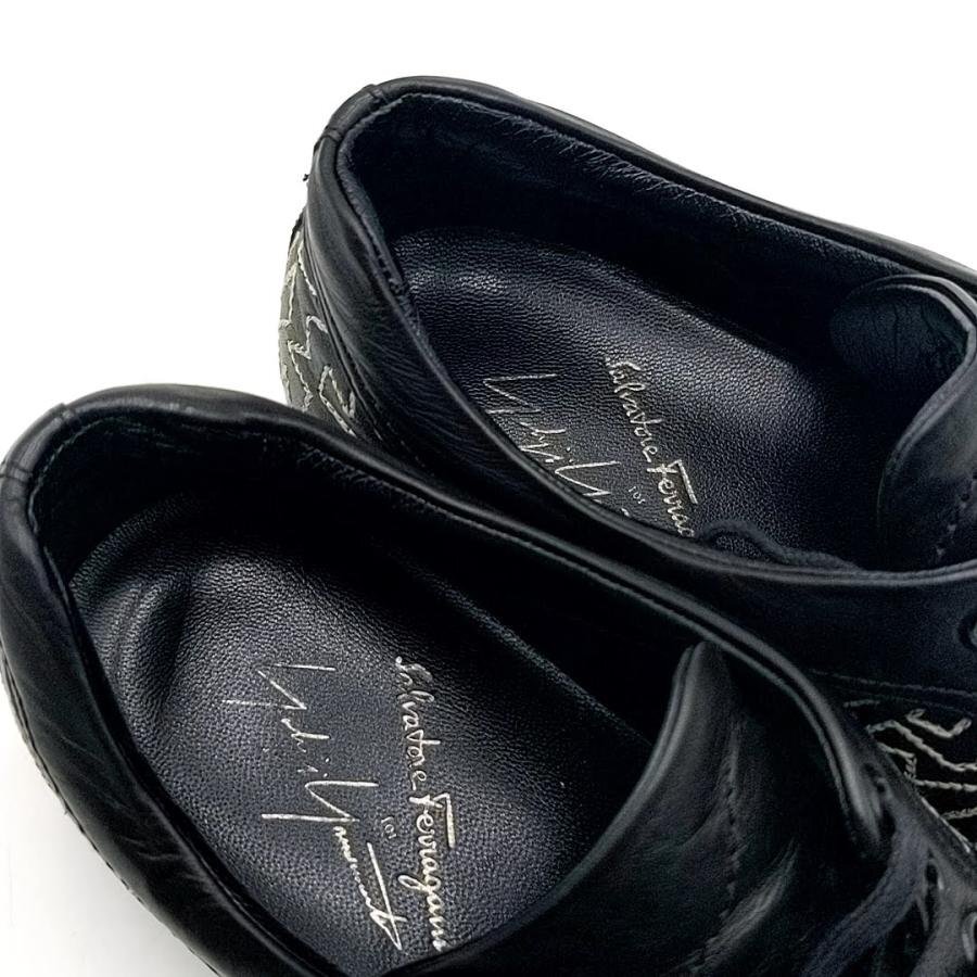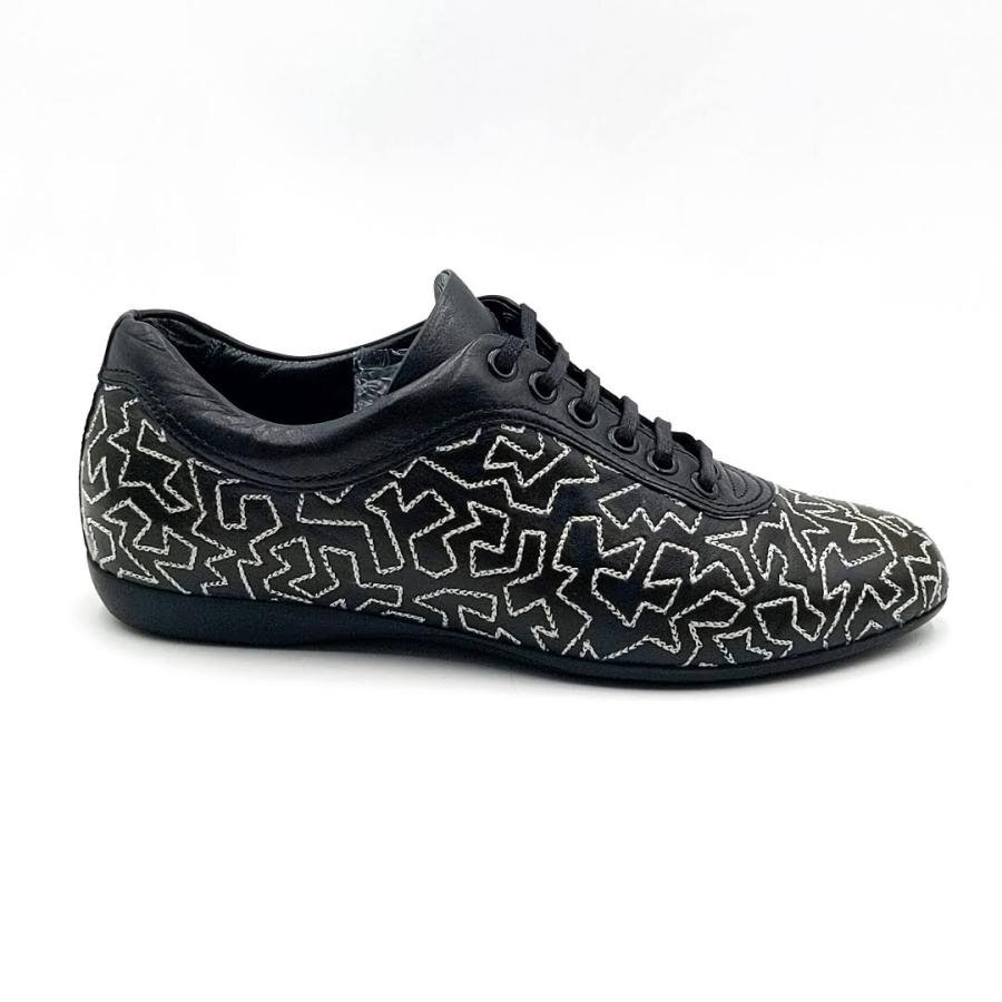 ・送料無料 サルヴァトーレ フェラガモ ヨウジヤマモト Salvatore Ferragamo Yohji Yamamoto スニーカー 靴 スニーカー レザー 本革 幾何学模様 刺繍 SL4737 6C 23cm相当 黒 ブラック系 レディース