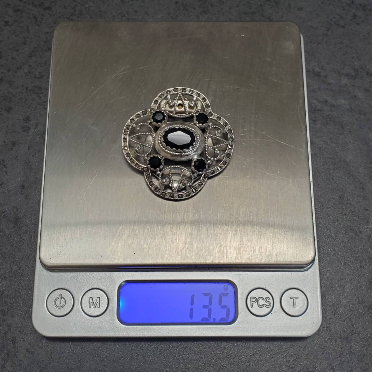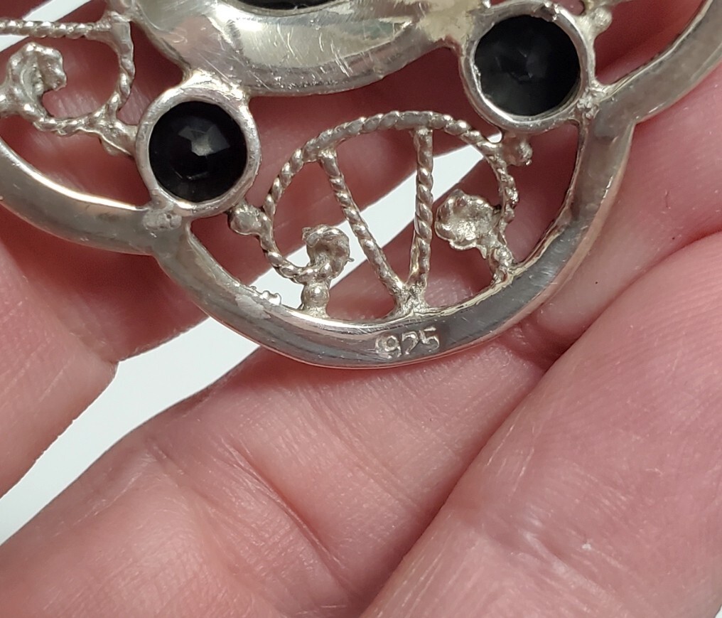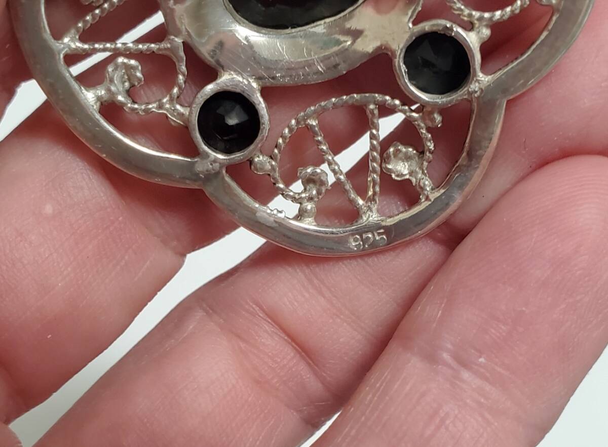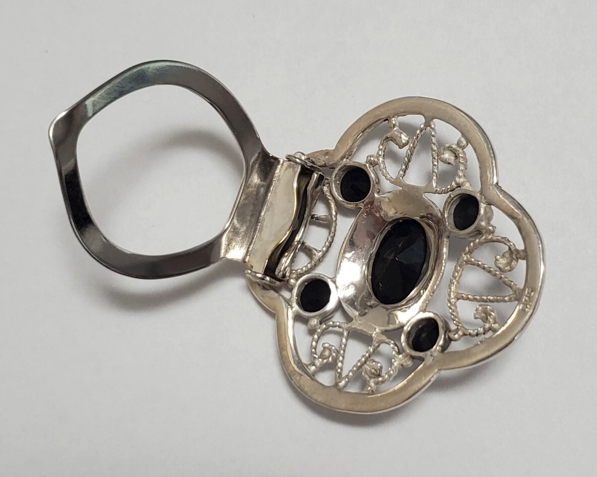 超レア SILVER 925 シルバー925刻印 オニキス スカーフクリップ レディース 13,5g 美品