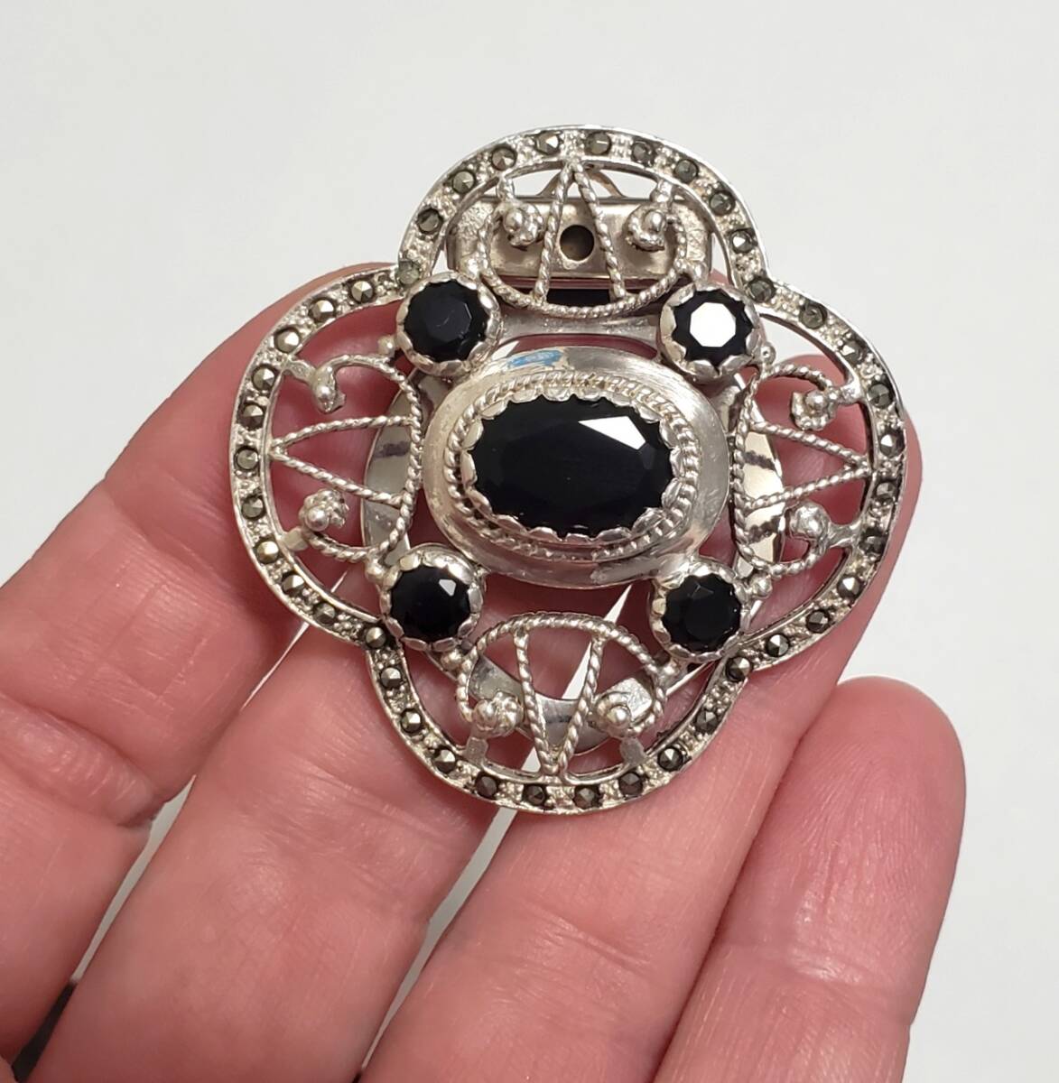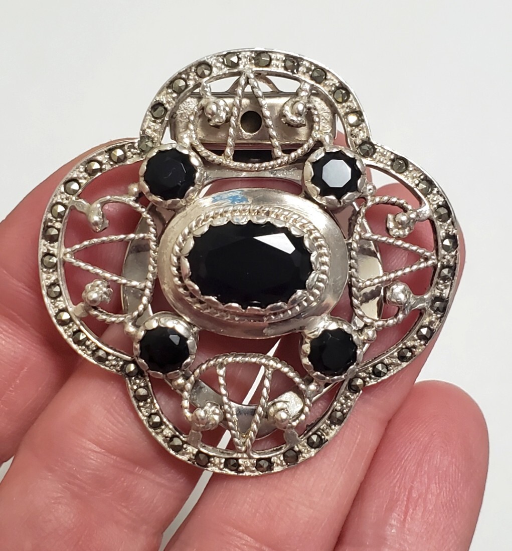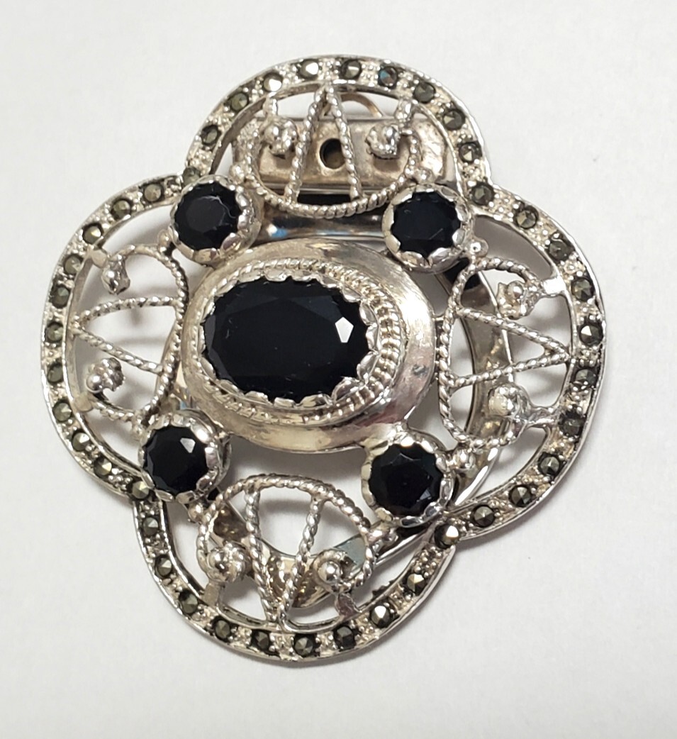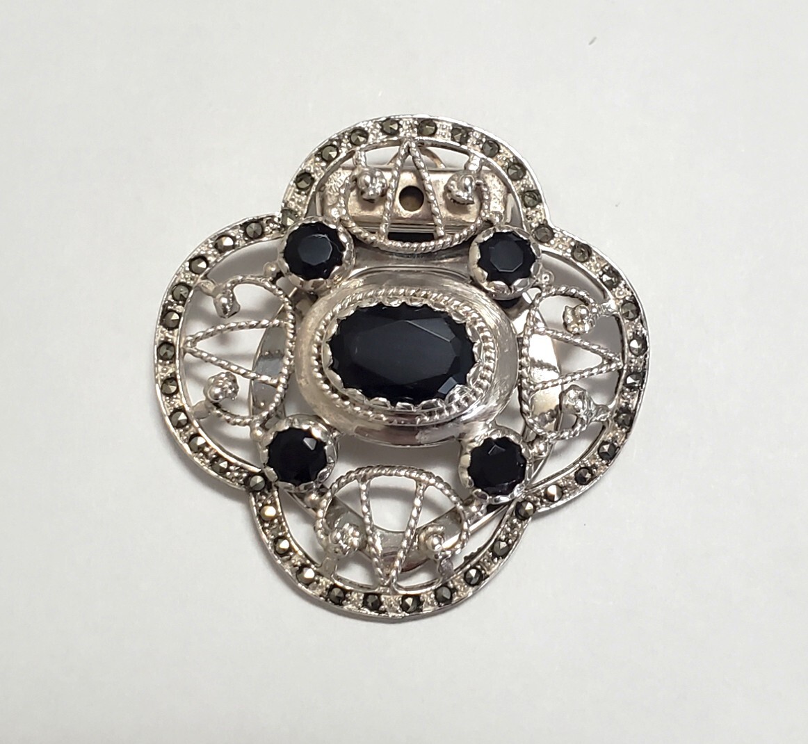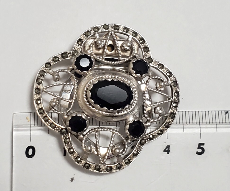 超レア SILVER 925 シルバー925刻印 オニキス スカーフクリップ レディース 13,5g