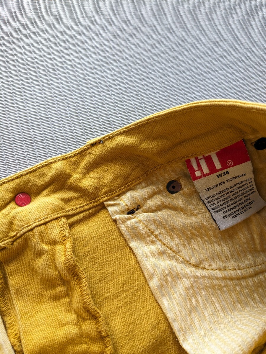 ⇒平置きで、ウエスト33cm、股上18cm、股下67.5cm、裾幅15.5cm
