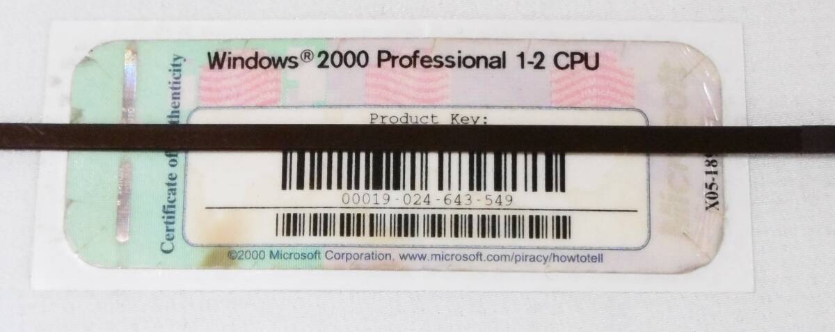 プロダクトシール1枚 ◆◇◆ Windows 2000 Professional 1-2 CPU ◆◇◆ Product Key ◆◇◆