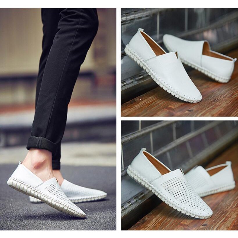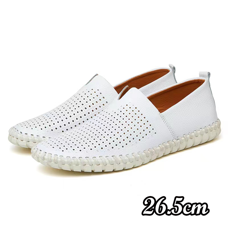 メンズ ドライビングシューズ 本革 ローファー スリッポン モカシン シューズ レザー カジュアル デッキシューズ おしゃれホワイトA 26.5cm