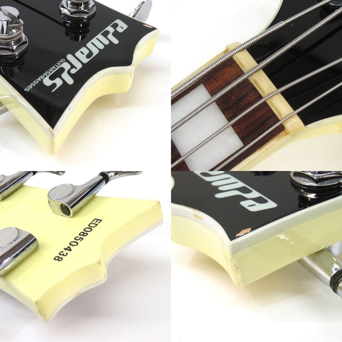 092s☆Edwards エドワーズ ESP E-AK-125 ホワイト エレキベース ※中古 □付属品:ギグケース □状態 ボルトオン、現在ネックはストレート、フレット残約9割、ロッド余裕有。 全体に細やかな擦りキズがございます。 ヘッド先にダメージがございます。 全体に日焼けが見られます。 □スペック ボディ:アッシュ ネック:メイプル 指板:ローズウッド PU配列:PJ フレット数:24f コントロール:1Vol、1Tone、3Way SW 重量:約4.2kg シリアル:ED0850438 全体に若干の使用感はございますが、まだまだ弾いていける1本です。 ※画像では判別しづらいUSED品特有の薄い汚れや薄いキズ、細かいキズなどある場合があります。 |