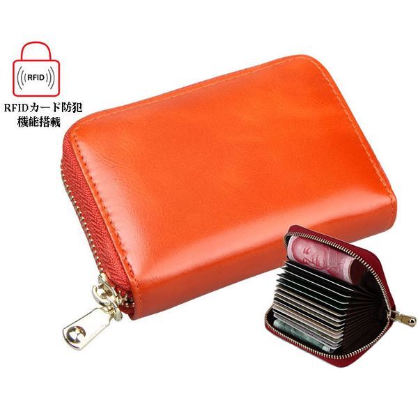 | 商品名 | カードケース メンズ レディース 本革 スキミング防止 カード収納 入れ オレンジ |
