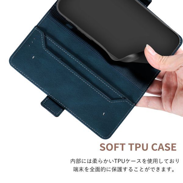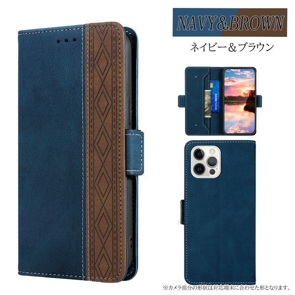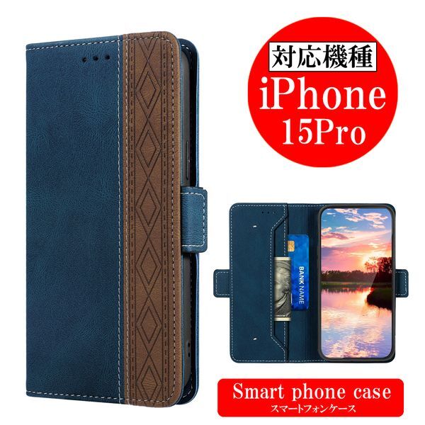 | 商品名 | iPhone 15Pro 用 スマホケース 新品 手帳型 レザー 耐衝撃 アイフォン カード収納 携帯ケース TPU ツートンカラー ネイビー&ブラウン |